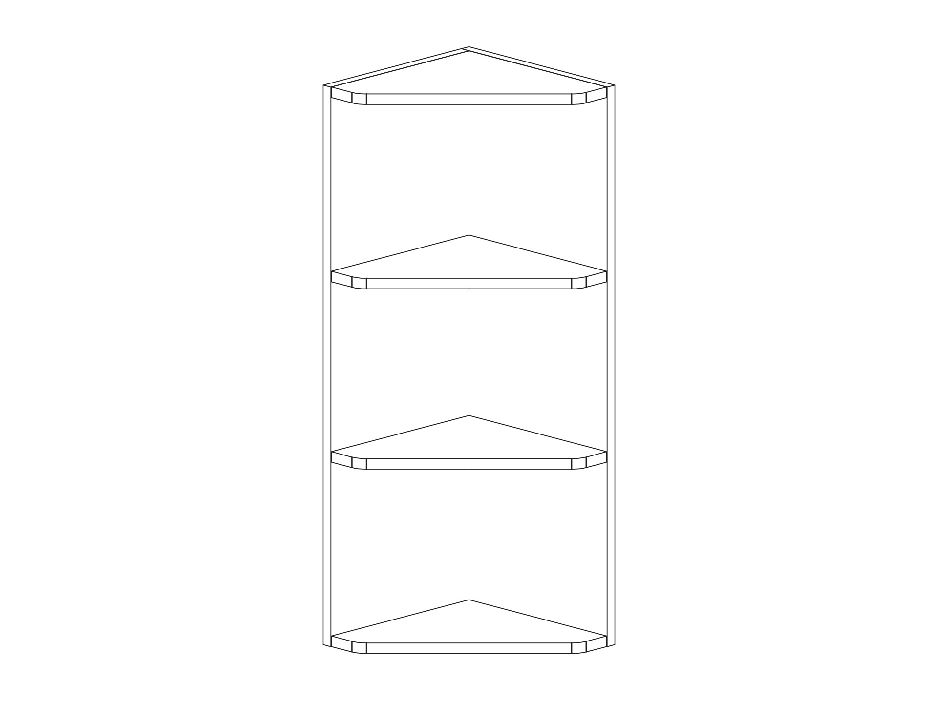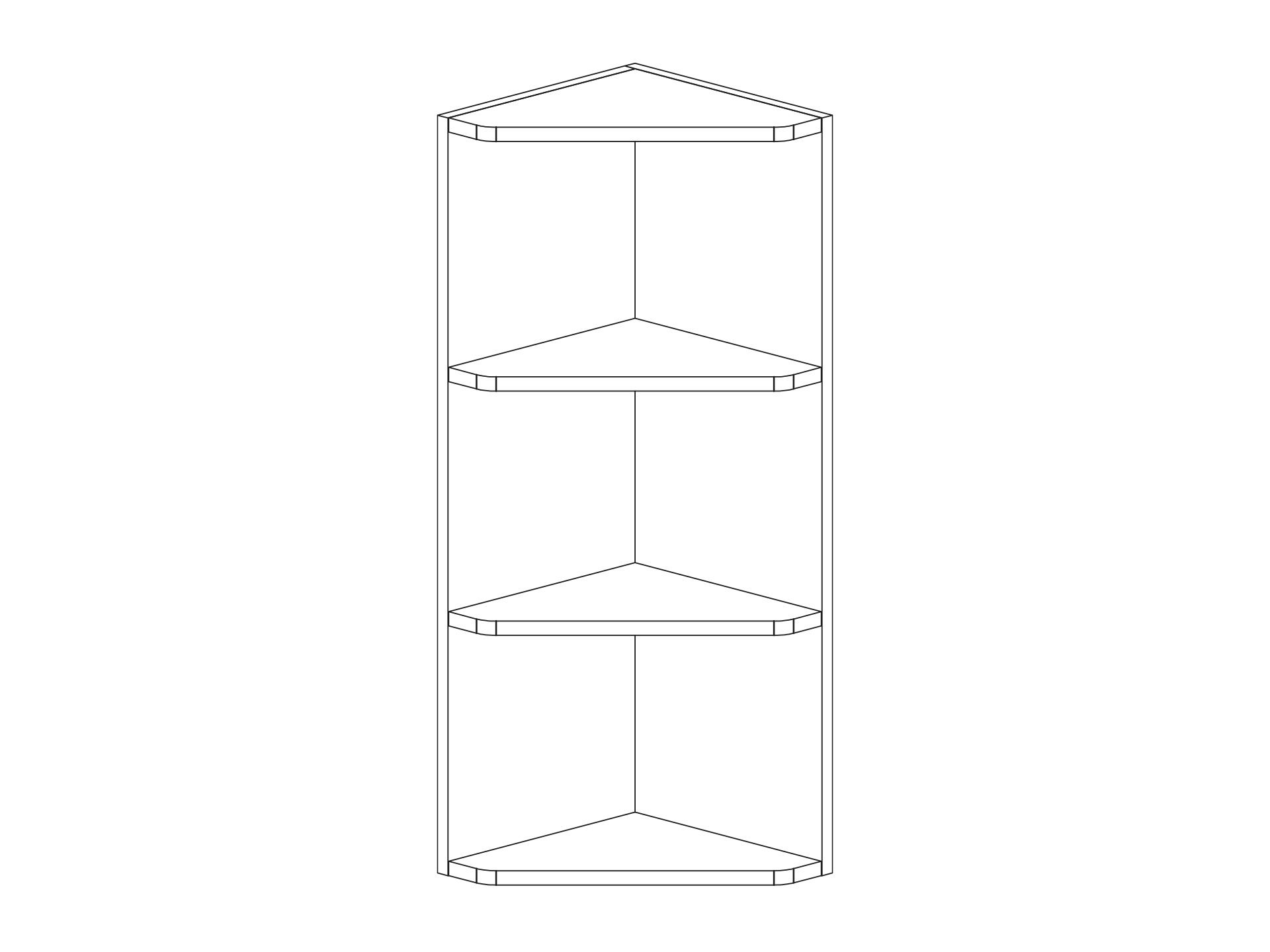 Avslutningshylla hörn för väggskåp i djup 302 mm, två hyllor. Välj utförande i vitt, kulör eller trä.