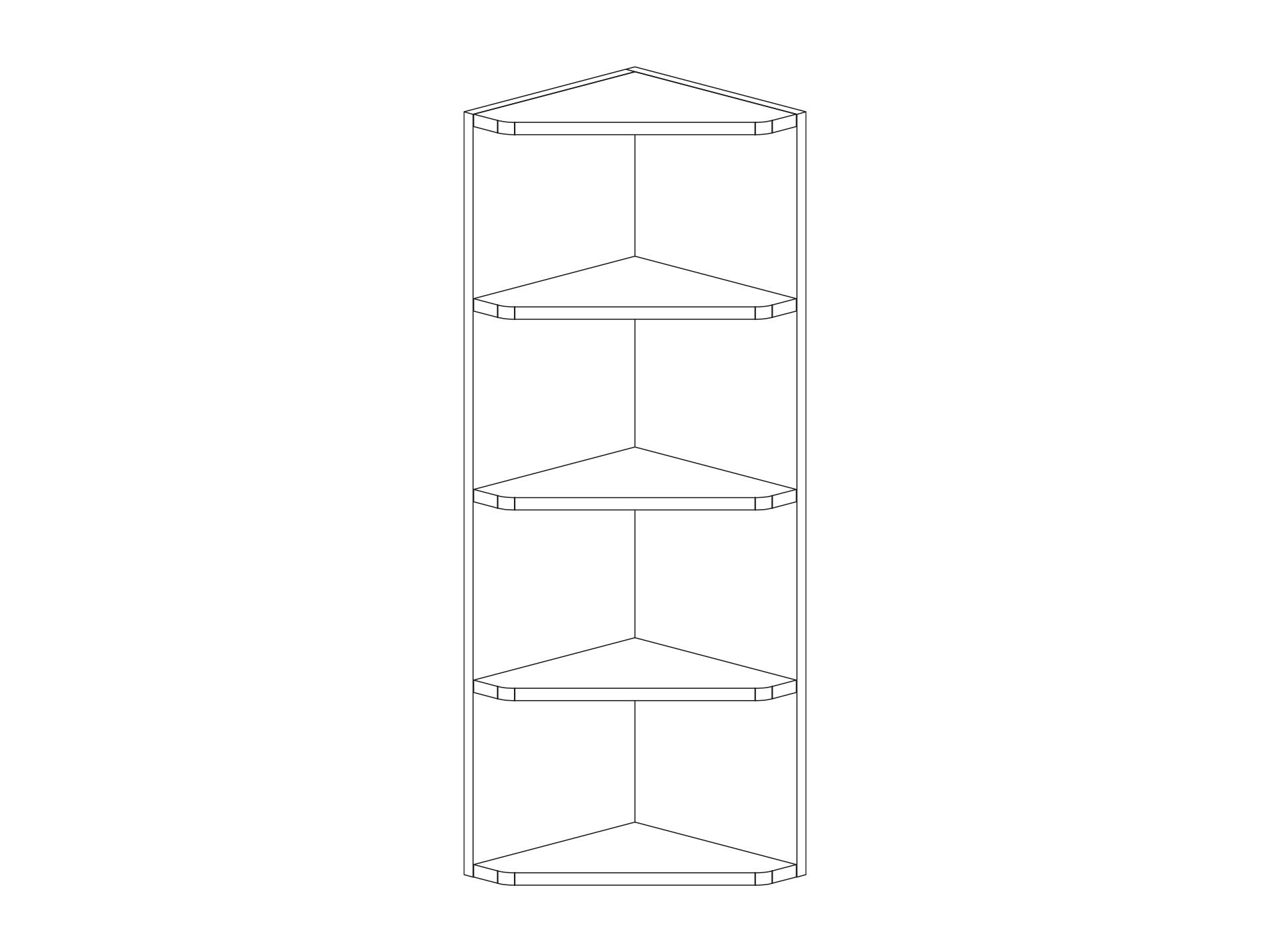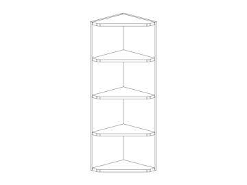Avslutningshylla hörn för väggskåp i djup 302 mm, tre hyllor. Välj utförande i vitt, kulör eller trä.