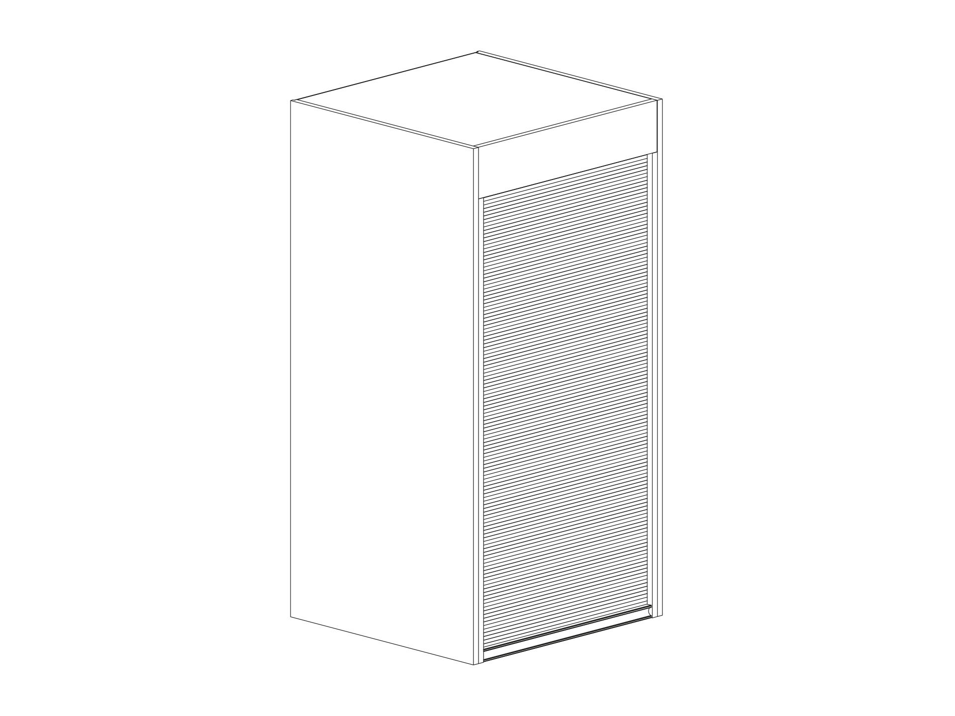 Jalusiskåp för placering på bänk. Träjalusi och tre hyllor. Välj utförande i trä på jalusi, hyllor och stomme.