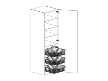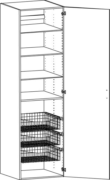 Linneskåp med lucka, tre trådbackar och fyra hyllor. Välj höger- eller vänsterhängd lucka (bredd 800 mm har parluckor). Välj front och utförande. Finns i flera bredder.
