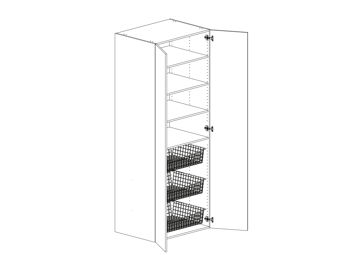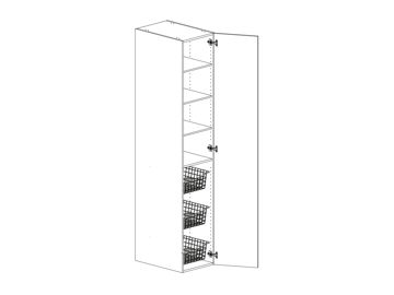 Linneskåp med lucka fyra hyllor och tre trådbackar, höjd 1950/2100 djup 580