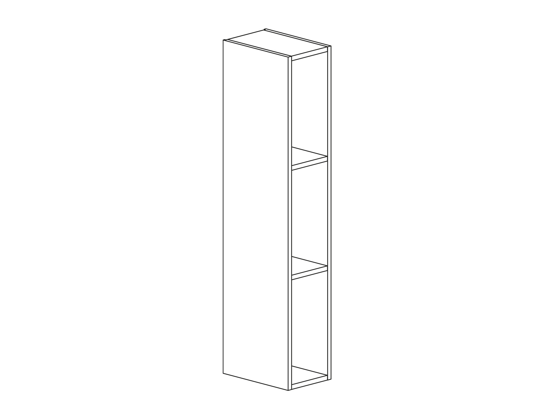 Öppen hylla med två fasta hyllor (1138mm) 200mm målad/melamin/faner