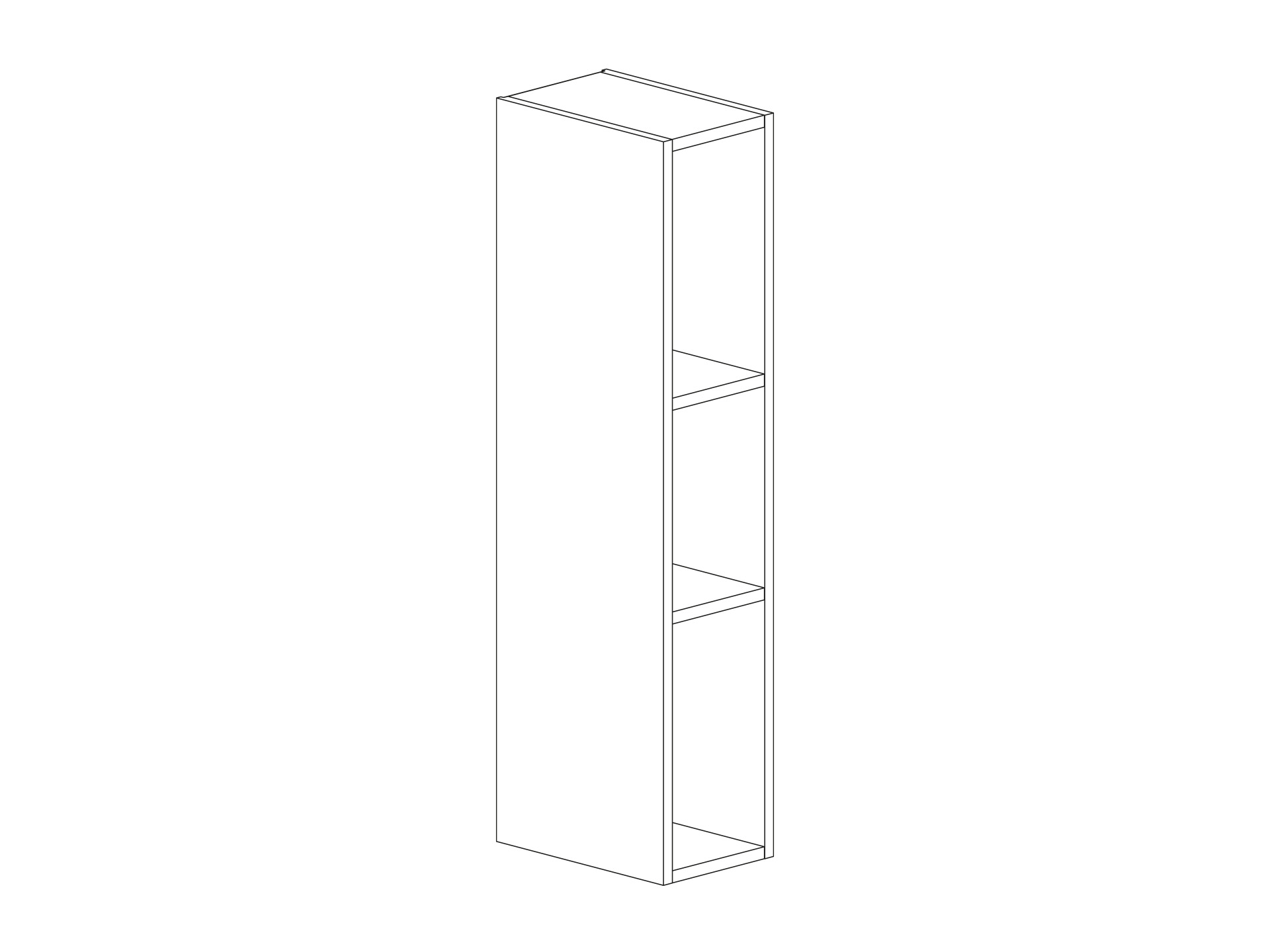 Öppen hylla med två fasta hyllor (988mm) 200mm målad/melamin/faner