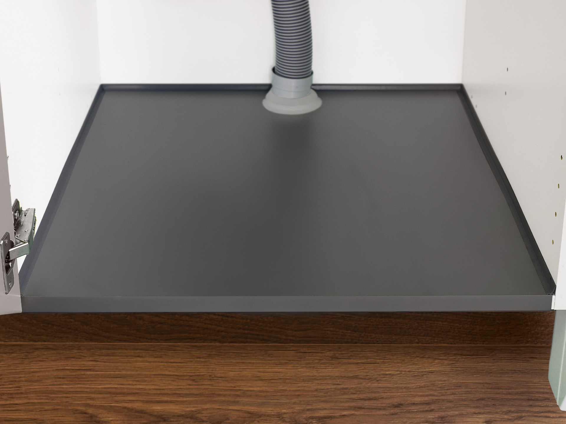 Vattentätt ytskikt i antracitgrå plast som skyddar vid vattenläckage genom att samla upp och leda fram vattnet så det blir synligt. Ingår som standard till diskbänkskåp med hel rygg och hel botten. Finns i flera bredder.