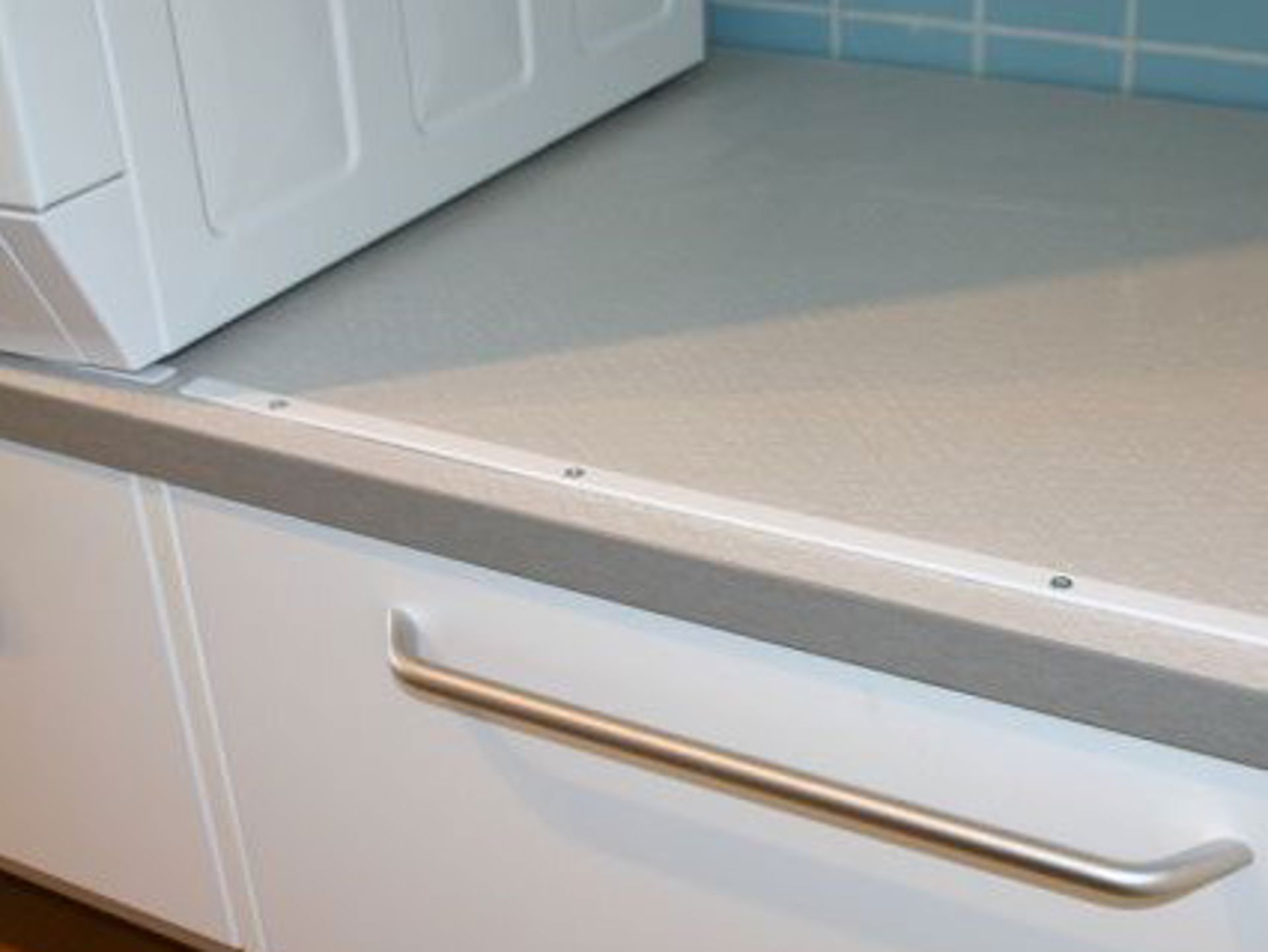 Säkringslist som monteras framför tvätt/tork vid upphöjd placering, för att maskinerna inte ska skaka fram till bänkskivekanten och tippa ner. Medföljande skruv för montering: art.nr. 39116 Spax-S TFX 4,0x16, 4 st/list.