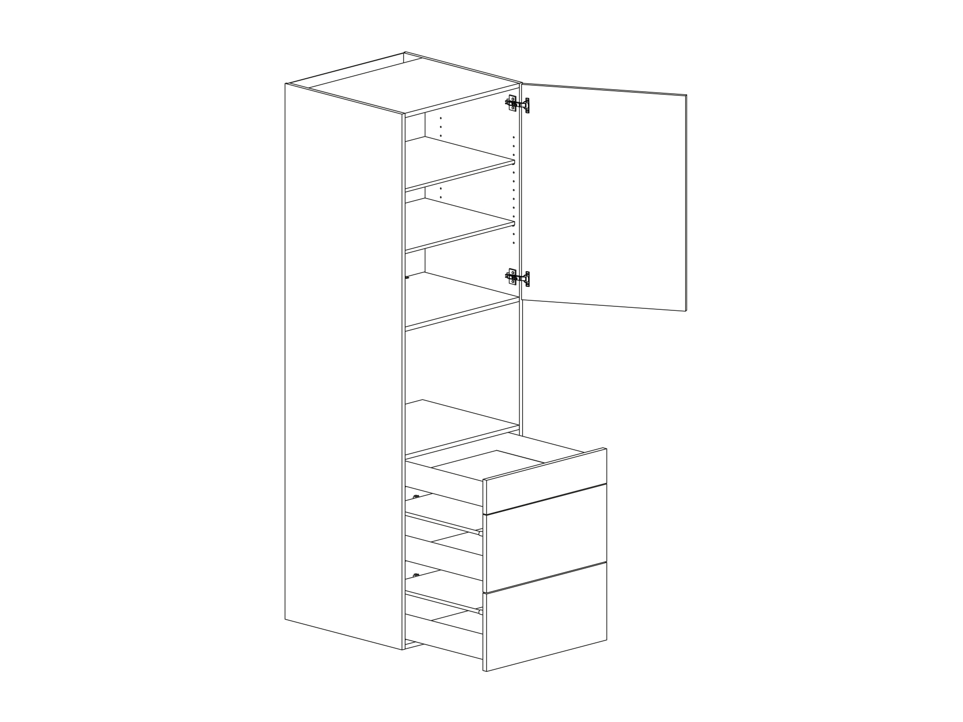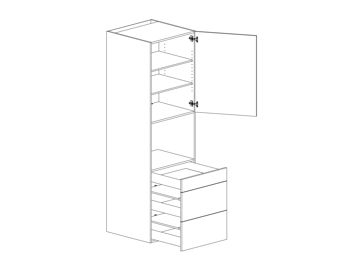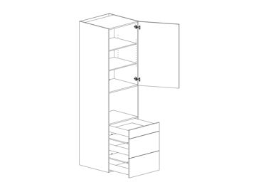 Skåp för ugn/mikro öppen 450 lucka och tre lådor, höjd 1950/2100, djup 580