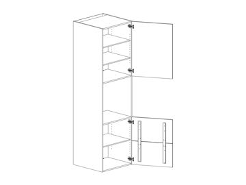 Skåp för ugn/mikro öppen 590 DUO-lucka och två hyllor, höjd 1950/2100, djup 580