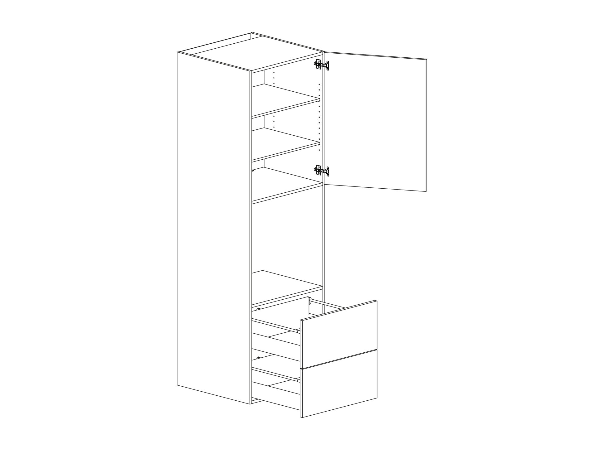 Skåp för ugn/mikro öppen 590 lucka och två lådor, höjd 1950/2100 djup 580
