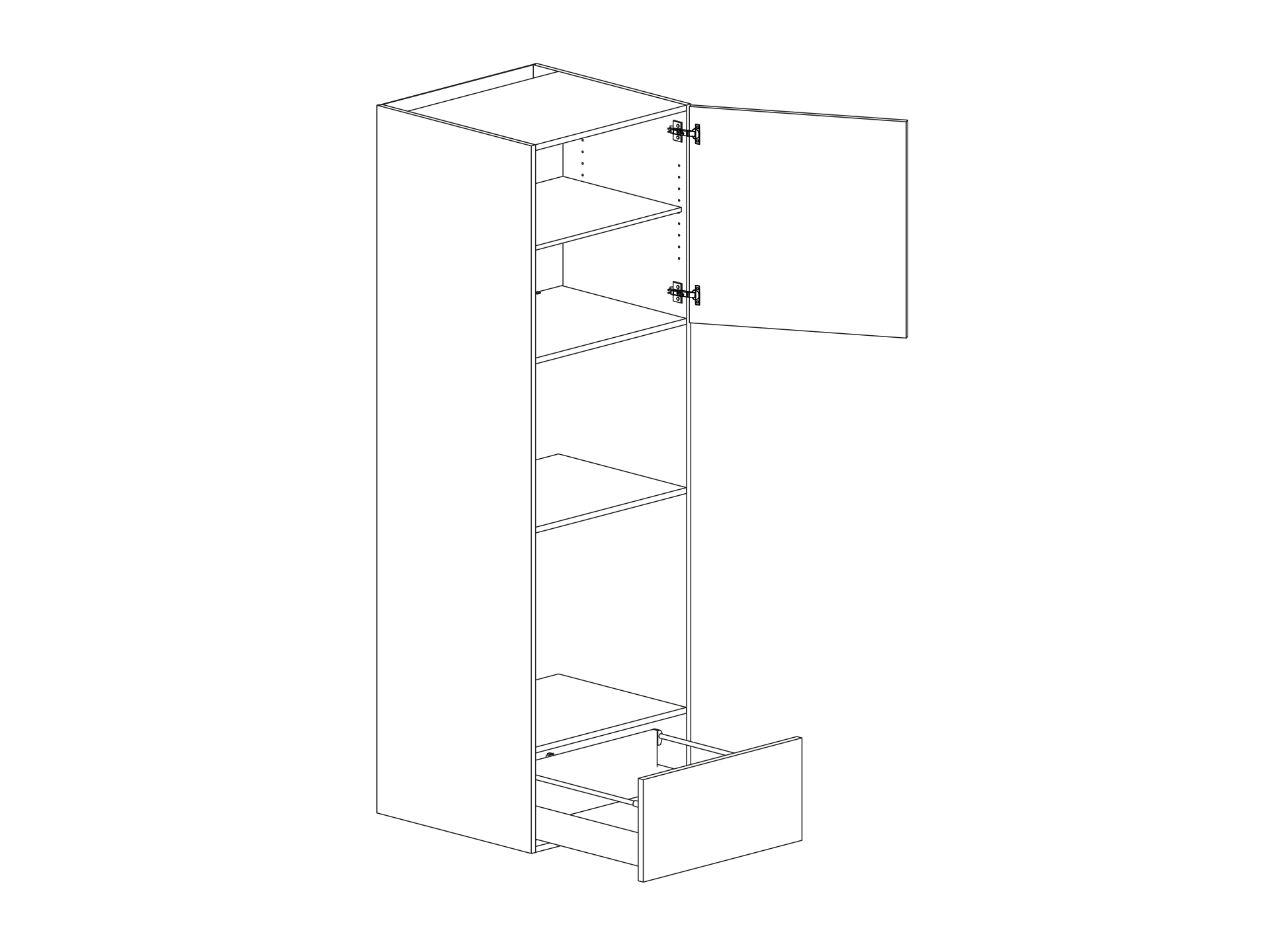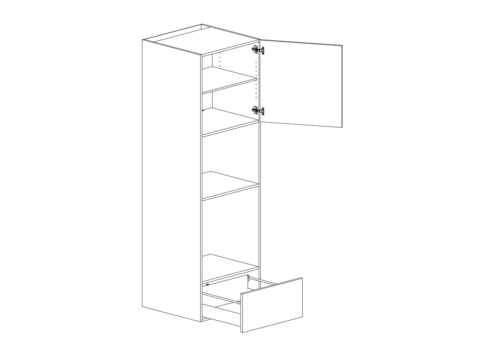 Skåp för ugn/mikro öppen 590/450 lucka och en låda, höjd 1950/2100, djup 580