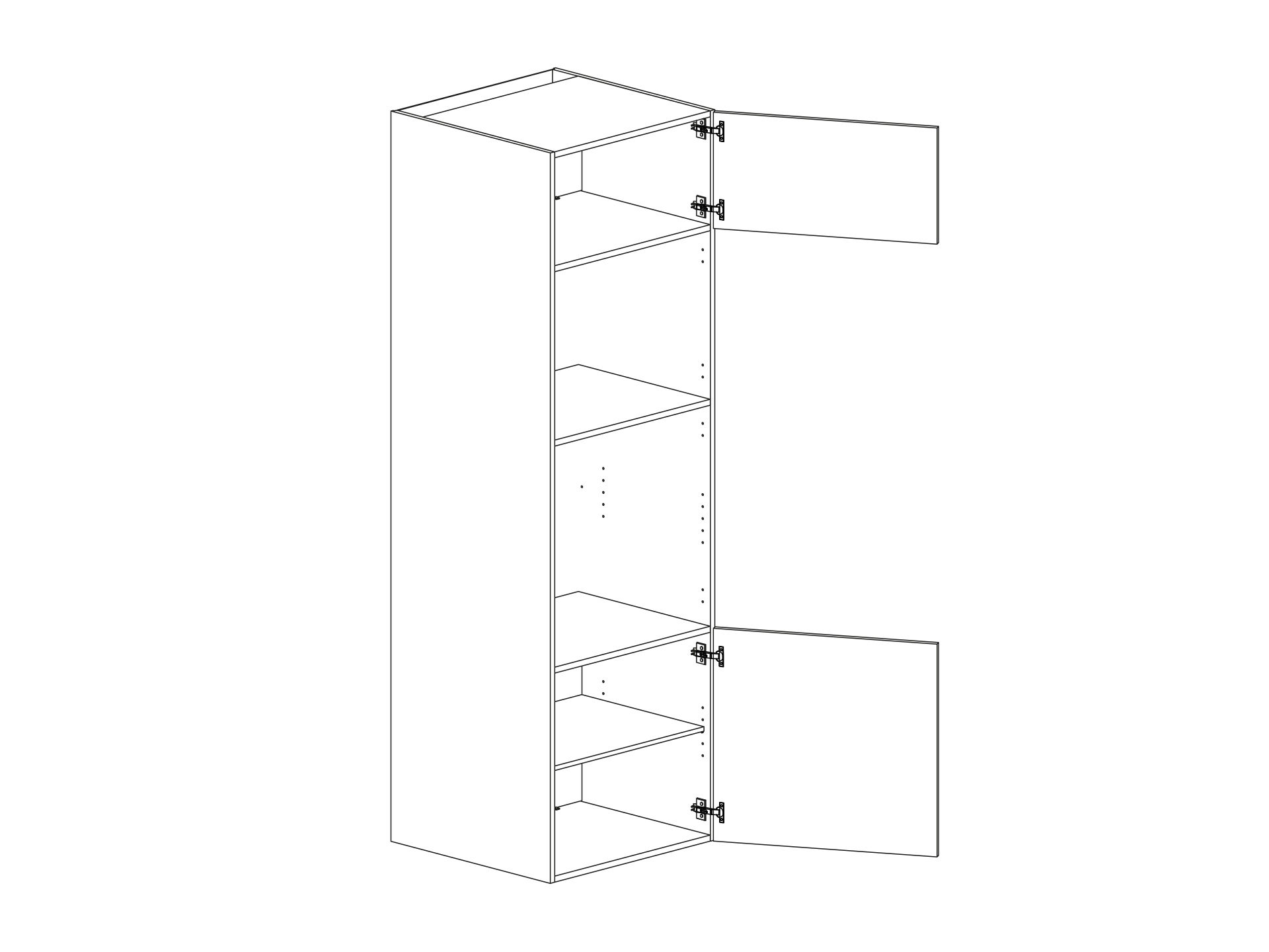 Skåp för ugn/mikro öppen 590/450 luckor och en hylla, höjd 1950/2100, djup 580
