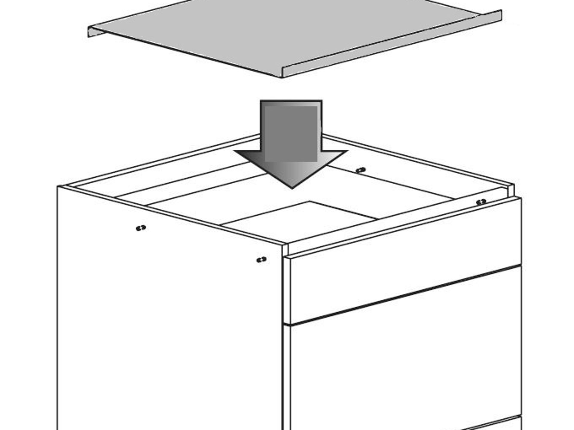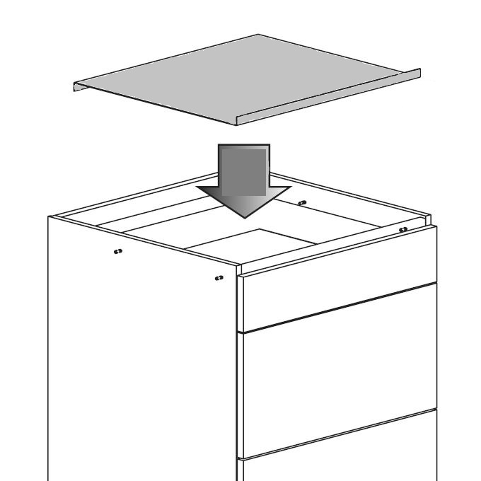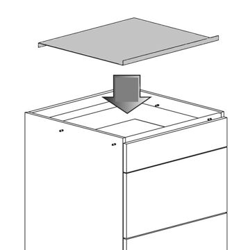 Skyddsplåt för hällskåp ingår som standard i hällskåpen. Monteras på fyra hyllbärare 39001. Levereras löst i en av hällskåpets lådor. Kontrollera med vitvaruleverantören om det krävs en skyddsplåt under den aktuella hällen och att Vedums lösning av ventilationen i skåpsstommen är tillräcklig enligt installationsritningen. Är det något som behöver åtgärdas löses detta på plats.