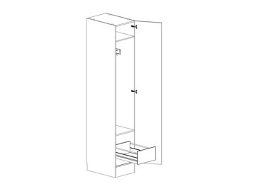 Städskåp med lucka, en invändig hög fullutdragslåda, en hylla och en strykbrädes- och dammsugarslanghållare. Bottenskydd i plast. Flyttbar (fast sockel). Välj Classic- eller Scalalåda. Välj höger- eller vänsterhängd lucka (bredd 800 mm har parluckor). Välj front och utförande. Som tillbehör till skåp i bredd 400, 600 och 800 mm finns källsortering Tyresta.