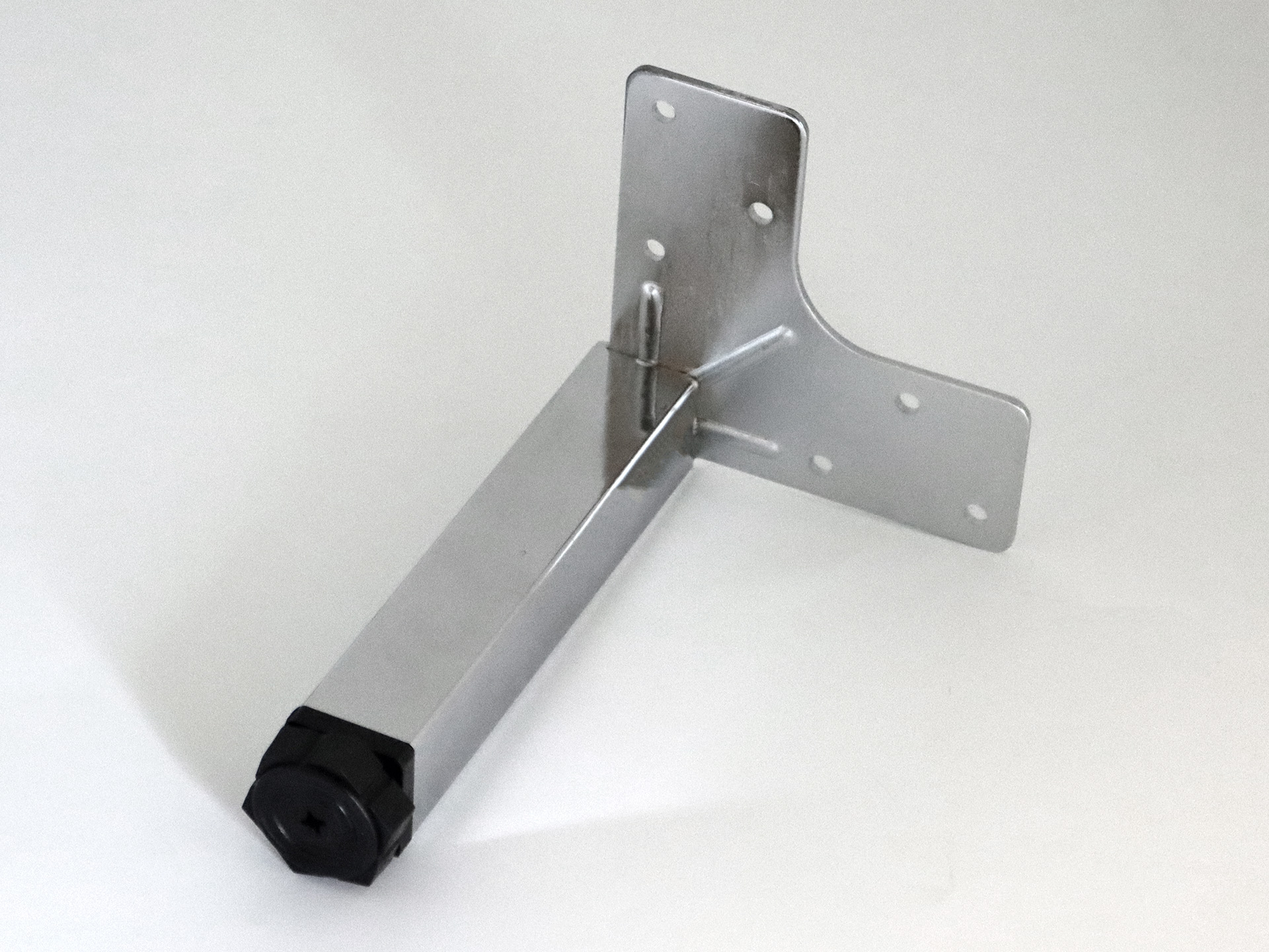 Stödben krom justerbar höjd 150-170 mm. Klarar 75 kg. Fyra skruv 39147 Spax-S TKX 4,0x15 medföljer och används för montering av stödbenet.