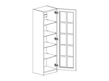Väggbänkskåp dekor med vitrinlucka och fyra hyllor, höjd 1350 djup 302