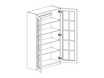 Väggskåp dekor i bänkmodell med vitrinlucka och fyra hyllor. Välj höger- eller vänsterhängd lucka (bredd 800 mm har parluckor). Välj vitrinfront och utförande. Välj mellan stomme och front i kulör eller trä. Skåpet har trähyllor som standard men kan även fås med glashyllor.