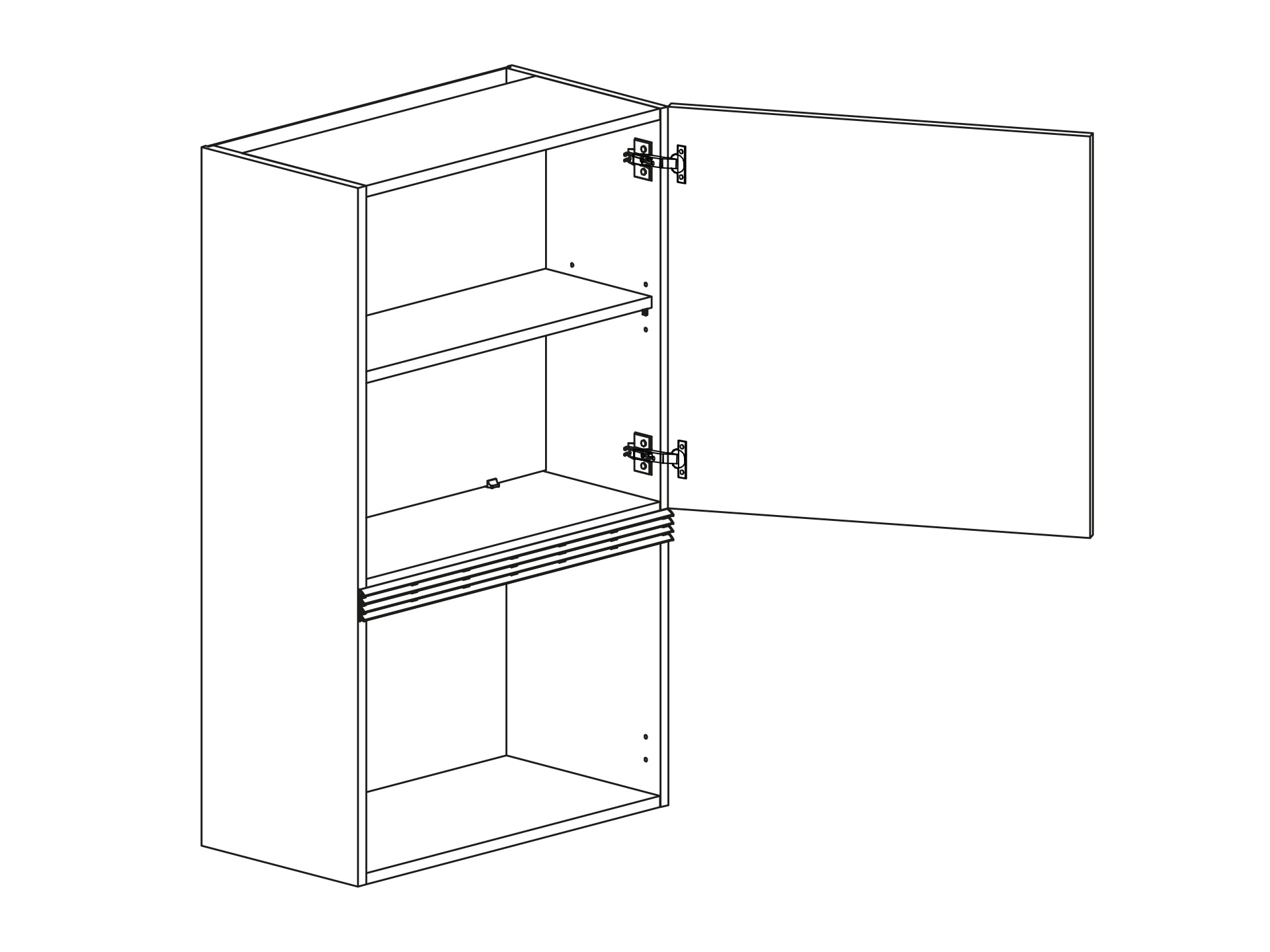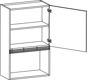 Väggskåp för micro med öppning 355-398 mm med lucka och två hyllor. Indragen botten som ventilation eller hel botten utan ventilation. Välj till ventilationsgaller ovanför micron. Välj höger- eller vänsterhängd lucka. Välj front och utförande.