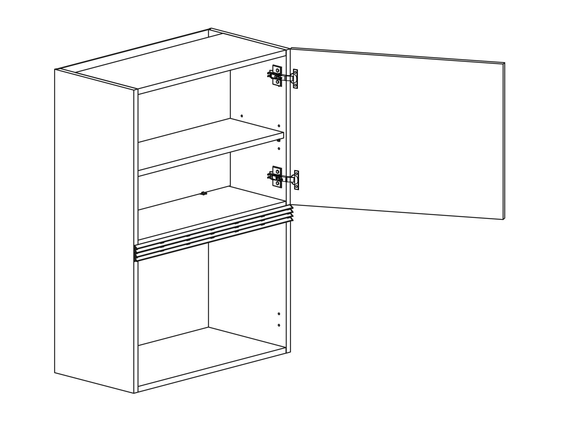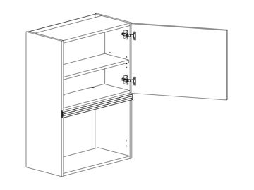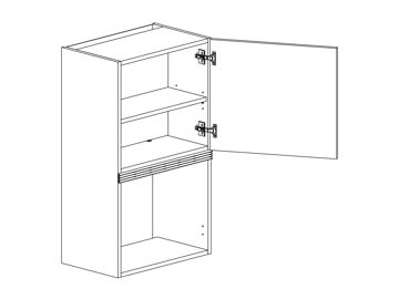 Väggskåp för micro med öppning 350-394 mm med lucka och två hyllor. Indragen botten som ventilation eller hel botten utan ventilation. Välj till ventilationsgaller ovanför micron. Välj höger- eller vänsterhängd lucka. Välj front och utförande.
