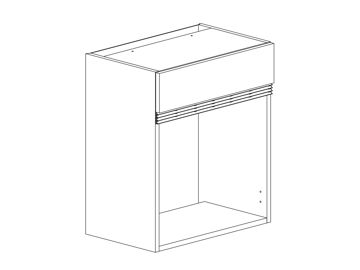 Väggskåp för micro med öppning 382-427 mm och fast front upptill. Indragen botten som ventilation eller hel botten utan ventilation. Välj till ventilationsgaller ovanför micron. Välj front och utförande.