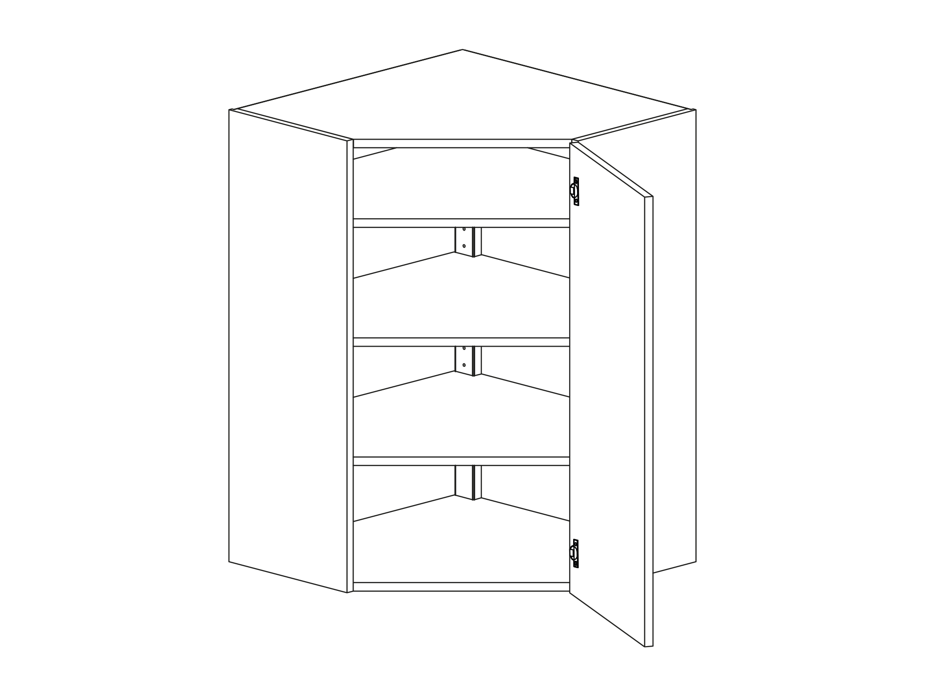 Väggskåp med tre hyllor hörnmodell diagonal (850mm) 600/600mm