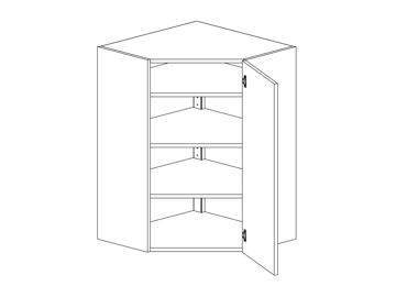 Väggskåp för hörn, diagonal hörnmodell med lucka och tre hyllor. Välj höger- eller vänsterhängd lucka. Välj front och utförande.