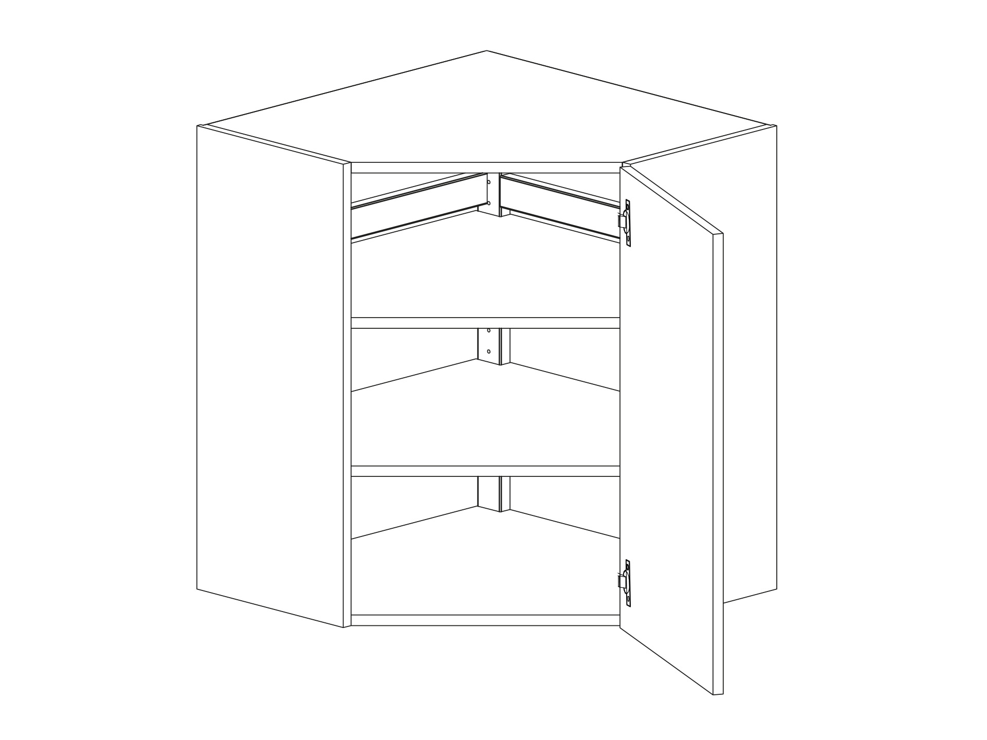 Väggskåp med två hyllor hörnmodell diagonal (700mm) 600/600mm