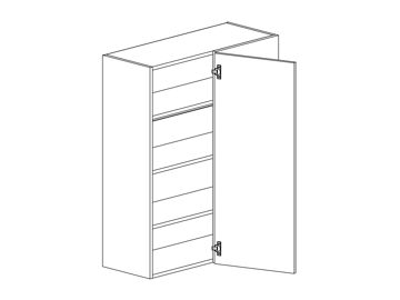 Väggskåp med lucka hörn rak och tre hyllor, höjd 988 djup 302