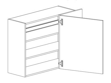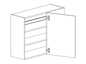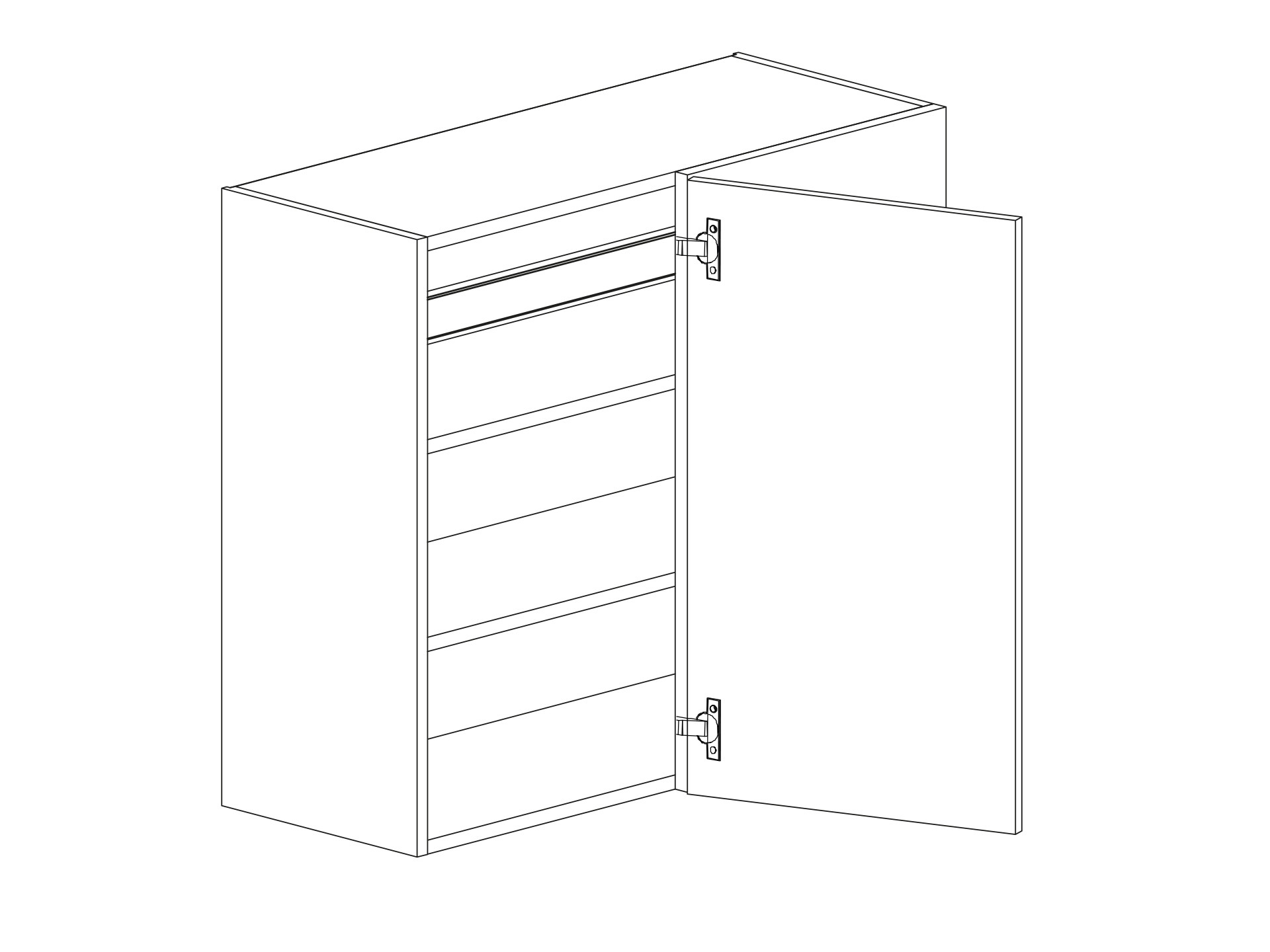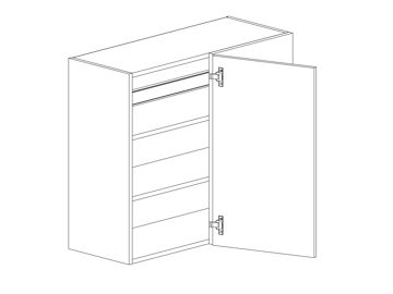 Väggskåp med lucka hörn rak och två hyllor, höjd 700 djup 302