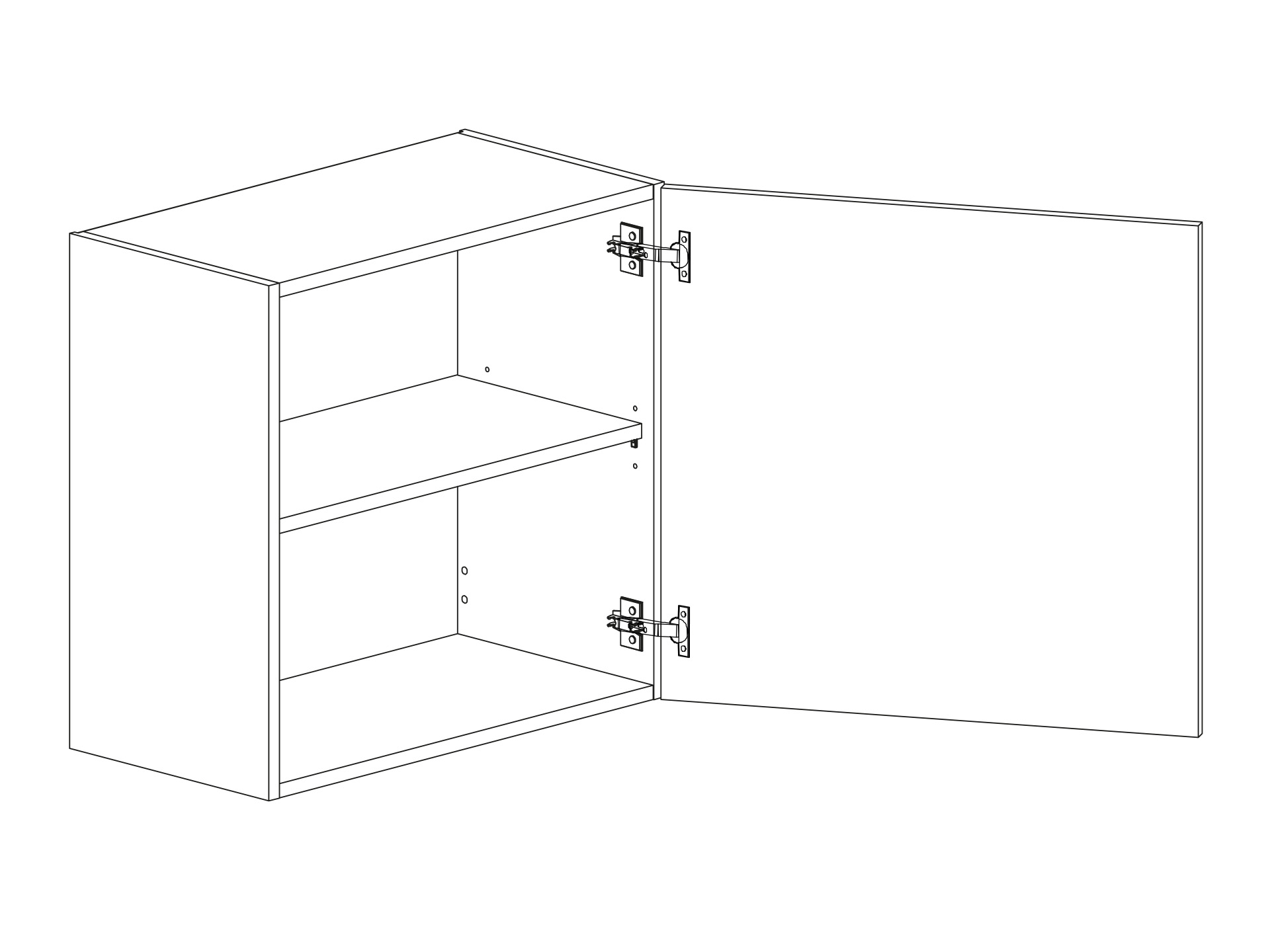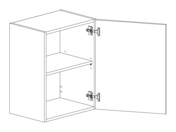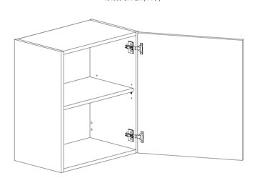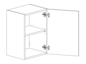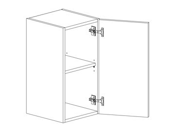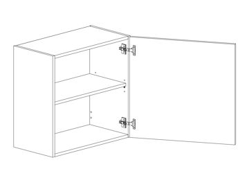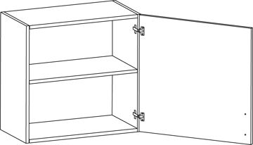 Väggskåp med lucka och en hylla. Välj höger- eller vänsterhängd lucka (bredd 800 mm har parluckor). Välj front och utförande. Finns även för placering på golv som grunda bänkskåp med handtagsplacering som bänkskåp, (se art.nr som slutar på B) OBS väggskåp kräver passbit eller list för att få samma bänkhöjd som ett bänkskåp.