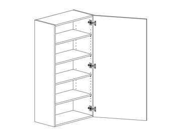 Väggskåp med lucka och fyra hyllor. Välj höger- eller vänsterhängd lucka (bredd 800 mm har parluckor). Välj front och utförande.
