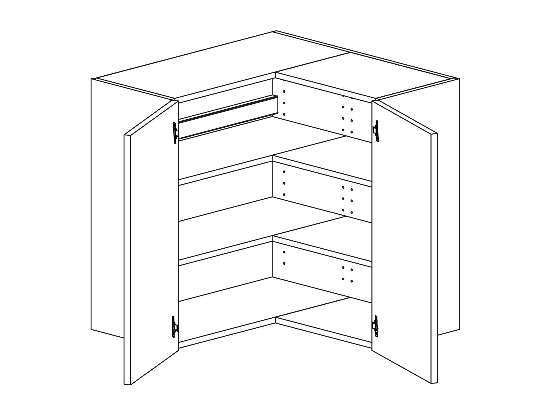 Väggskåp L-hörn med två hyllor (700 mm) parluckor