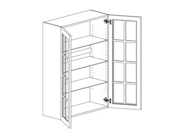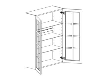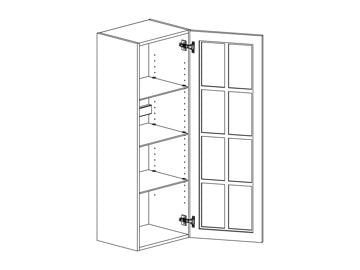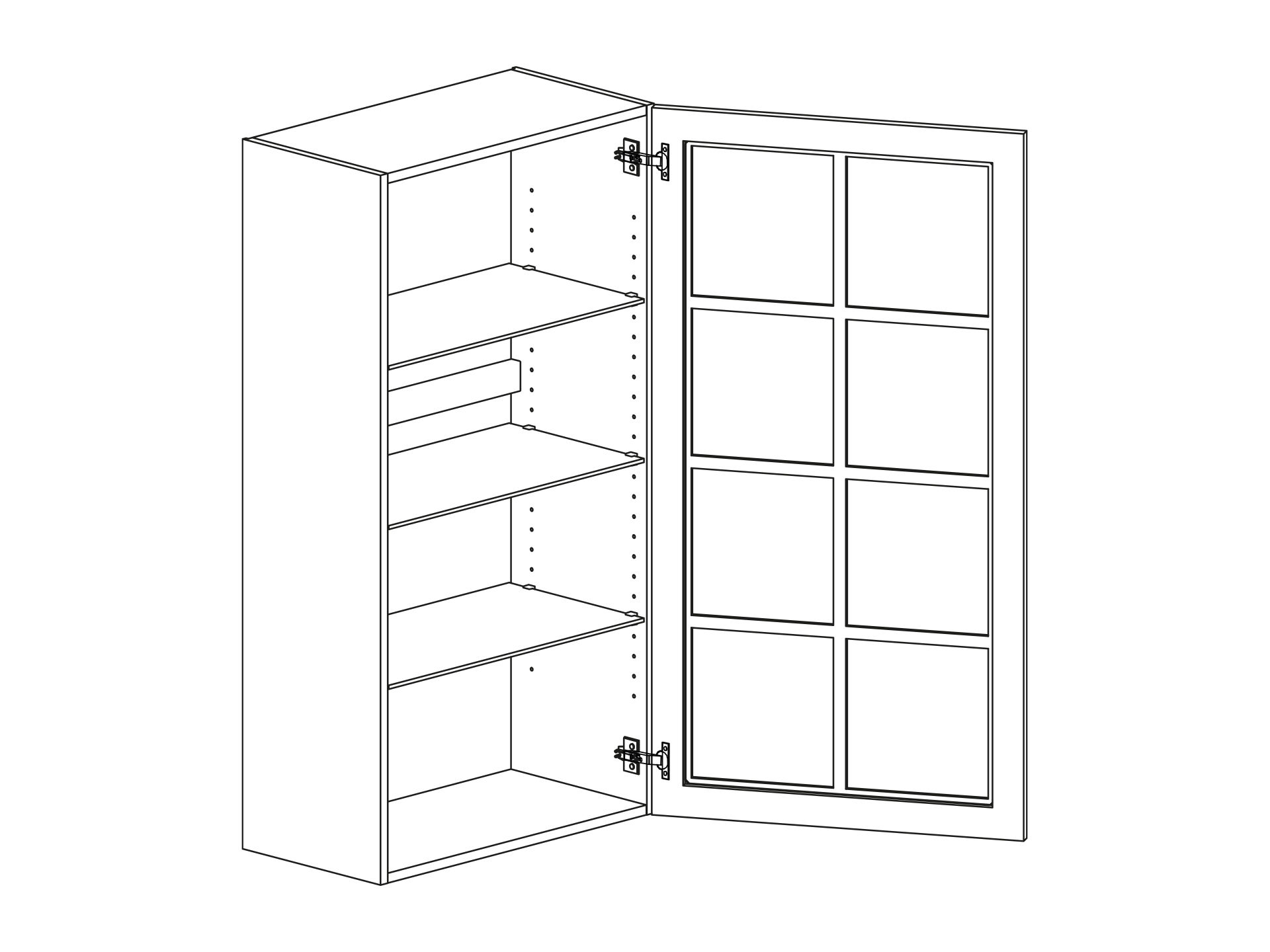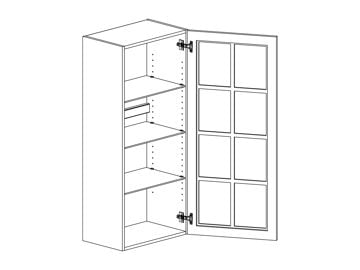 Väggskåp med vitrinlucka och tre hyllor. Välj höger- eller vänsterhängd lucka (bredd 800 mm har parluckor). Välj vitrinfront och utförande. Välj mellan stomme och front i vitt, kulör eller trä. Skåpet har trähyllor som standard men kan även fås med glashyllor.