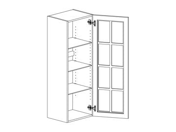 Väggskåp med vitrinlucka och tre hyllor, höjd 1138 djup 302