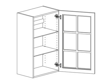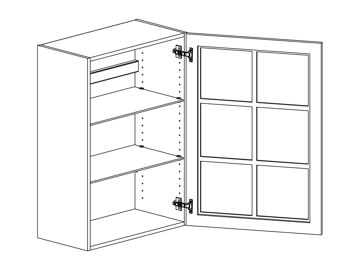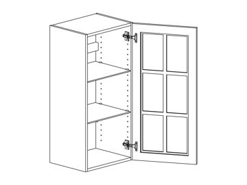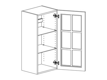 Väggskåp med vitrinlucka och två hyllor. Välj höger- eller vänsterhängd lucka (bredd 800 mm har parluckor). Välj vitrinfront och utförande. Välj mellan stomme och front i vitt, kulör eller trä. Skåpet har trähyllor som standard men kan även fås med glashyllor.
