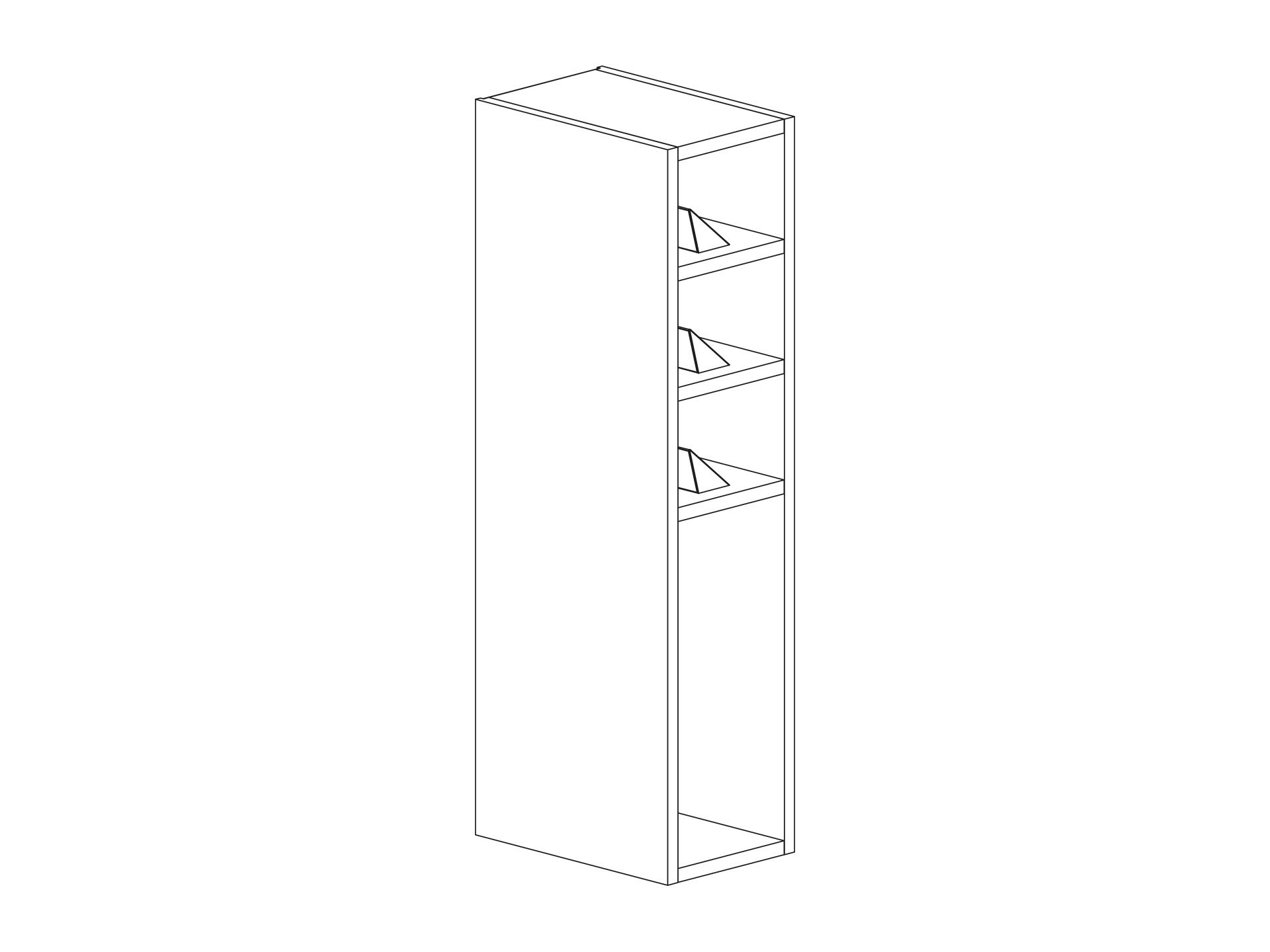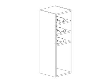 Vin- och kokbokshylla med tre hyllor. Fasta hyllor, finns i två bredder. Välj utförande i vitt, kulör eller trä.