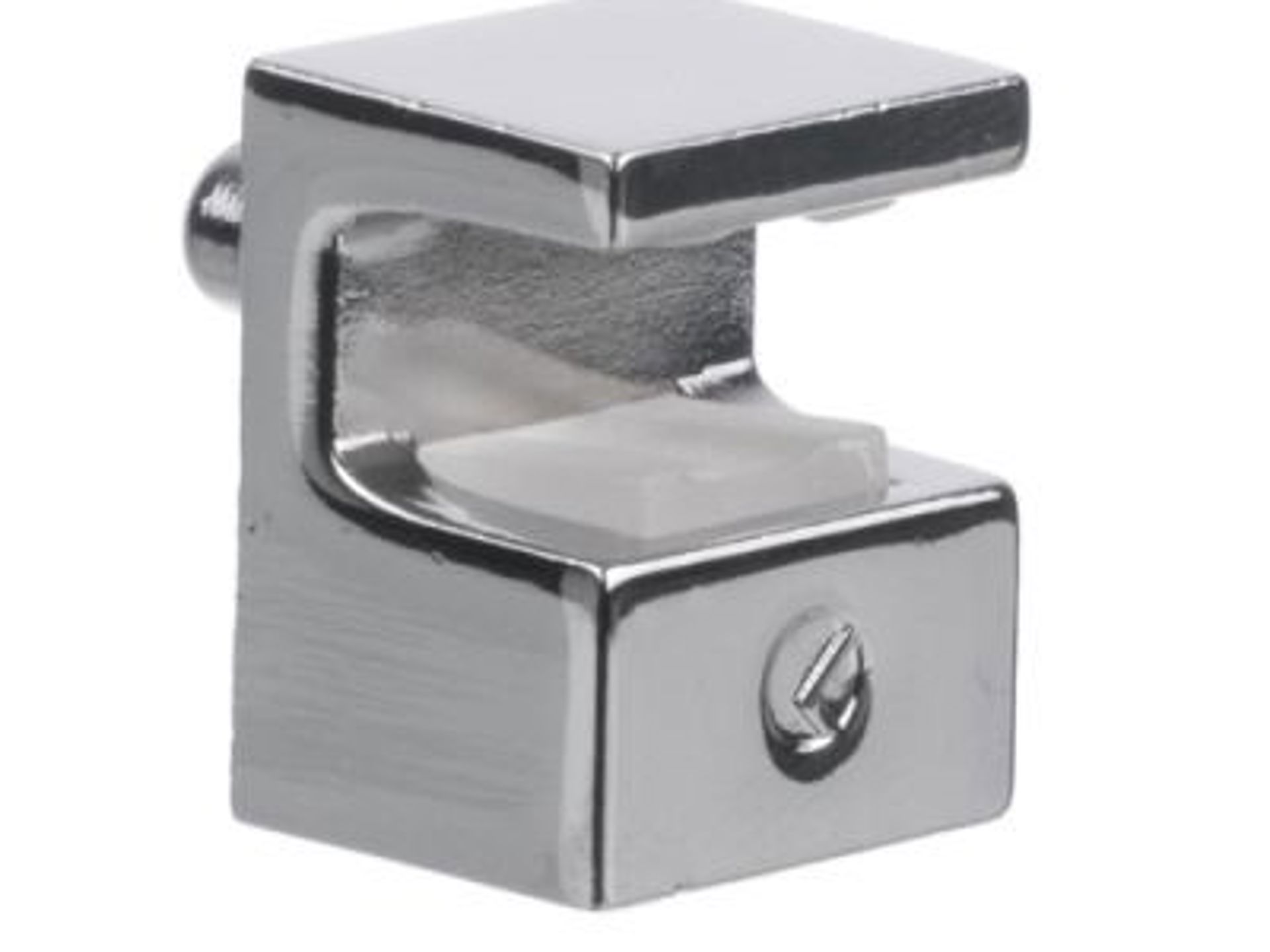Glashyllbärare för 5-6 mm glashyllor, med tapp ø5 mm. För glashyllor i vita, kulöra och fanerade vitrinskåp med 5 mm hål. Tillverkad av zamak med ytbehandling i nickel. Stoppskruv fixerar glaset samt förhindrar vibrationer. Ingår som standard i vitrinskåp vid leverans från Vedum. Fyra hyllbärare/glashyllplan.
