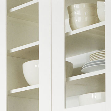 Hylla för vägg- och högskåp djup 302 mm. Ingår som standard i Vedums skåp. Monteras på fyra st. hyllbärare av stål med artikelnummer 39007.