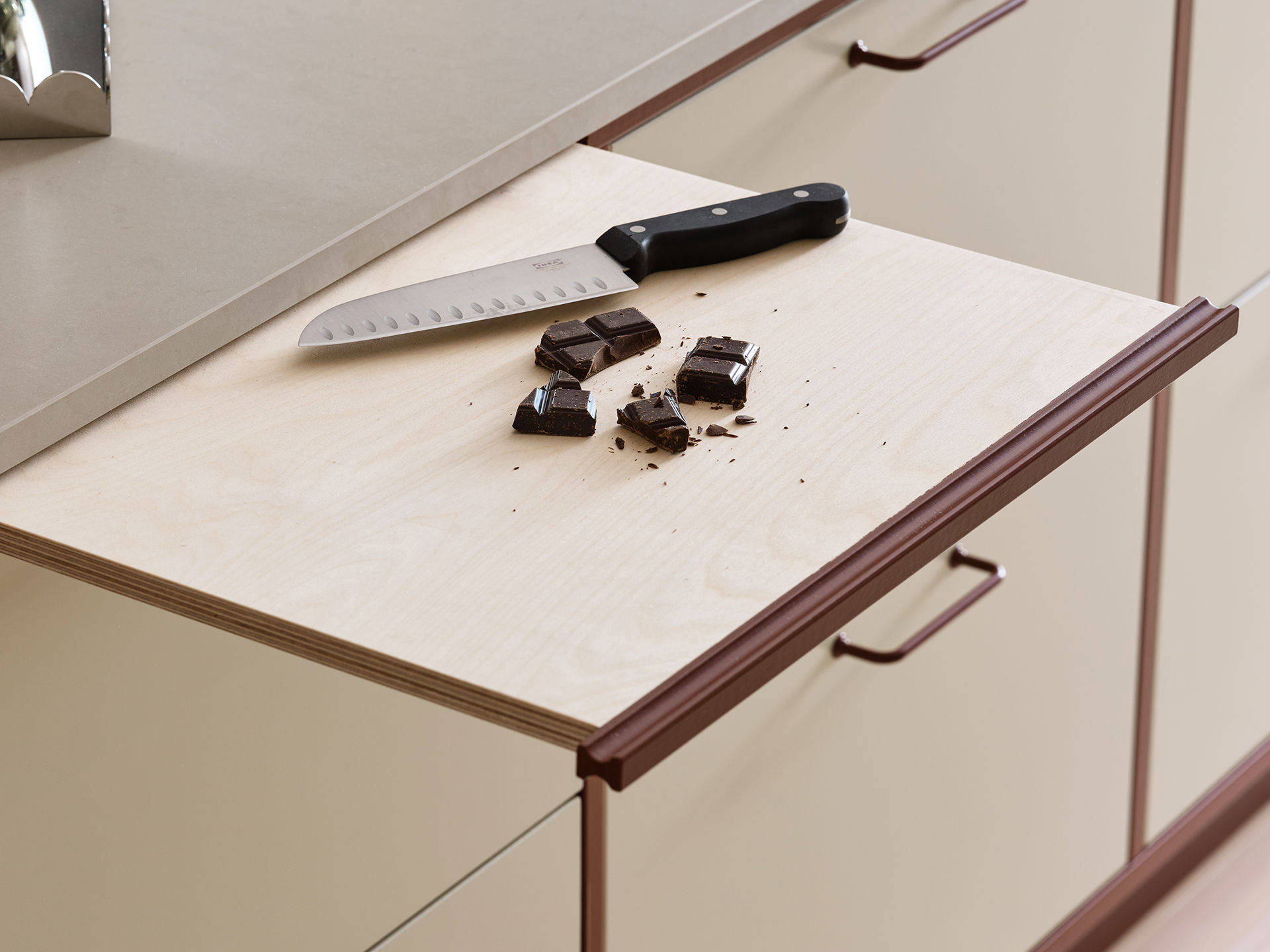 Skärbräda lös med draglist i ek, skåp bredd 300