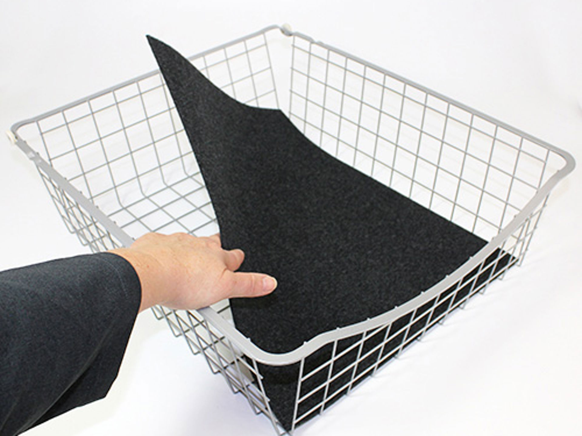 Antracitgrå filtmatta för placering i botten på trådbackar.