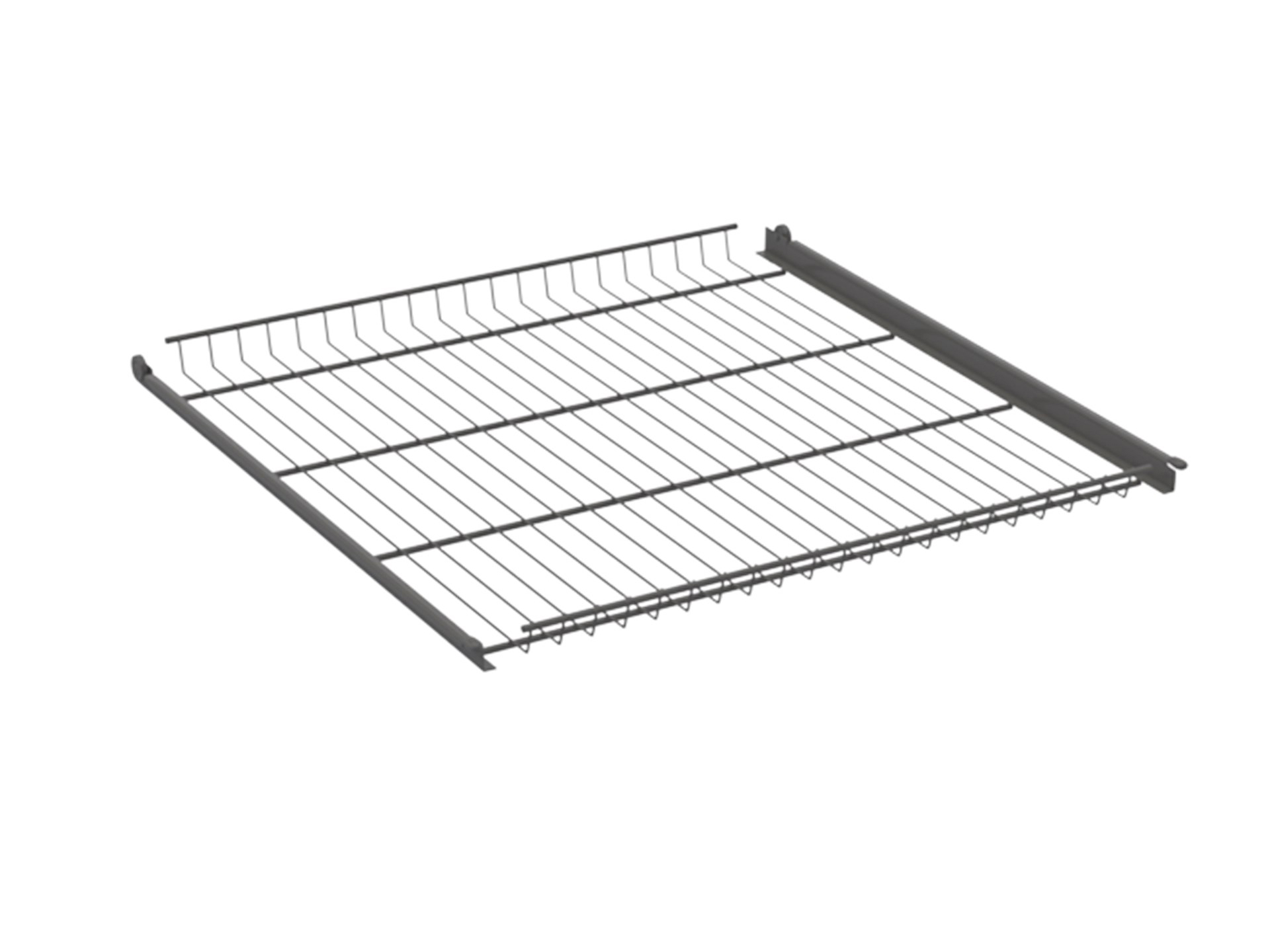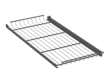 Trådhyllor av antracitgrå epoxilackerad tråd. Löper på stabila rullskenor med utdragsstopp. Tål belastning på 15 kg/hylla. Trådhyllorna har stöd i bakkant och finns för skåpsbredderna 300, 400, 500 och 600 mm. Ingår som standard i grytskåp med lucka. Passar också Ax väggsystem monterat i konsolram rullskena på hängskena i vägg. OBS ny färg antracitgrå fr.o.m februari 2026.