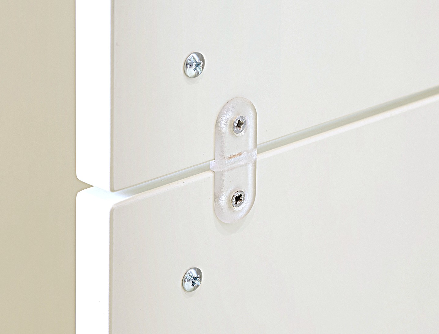 Set med beslag för sammanhållning av avdelad högskåpslucka.