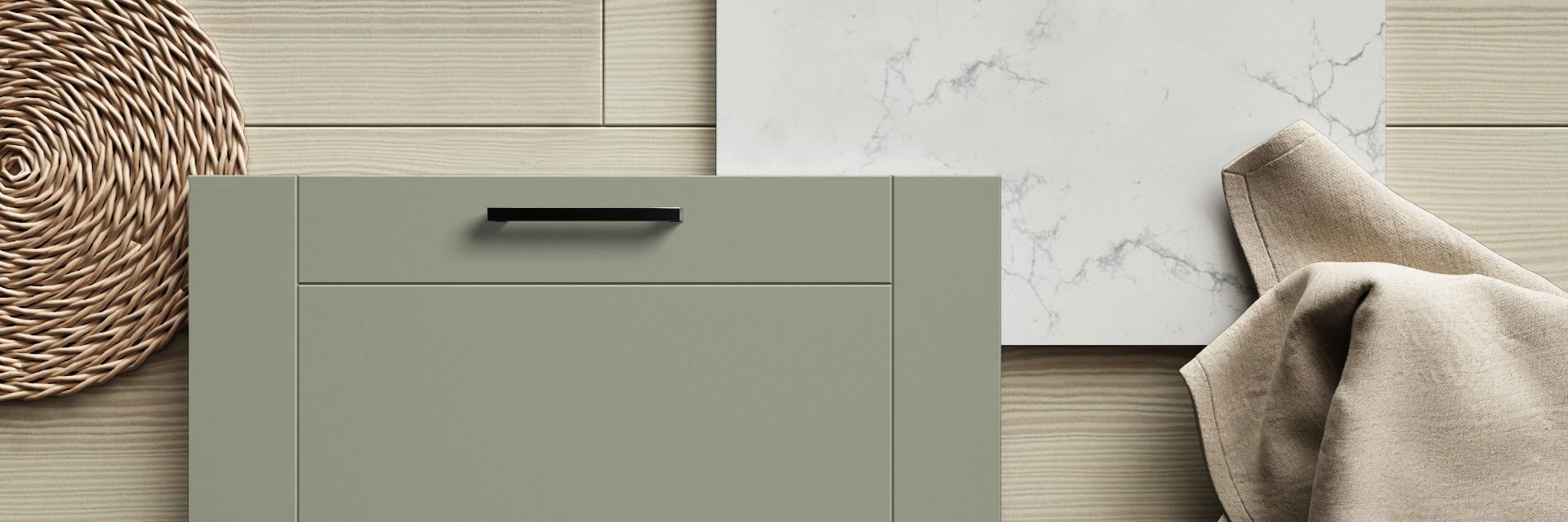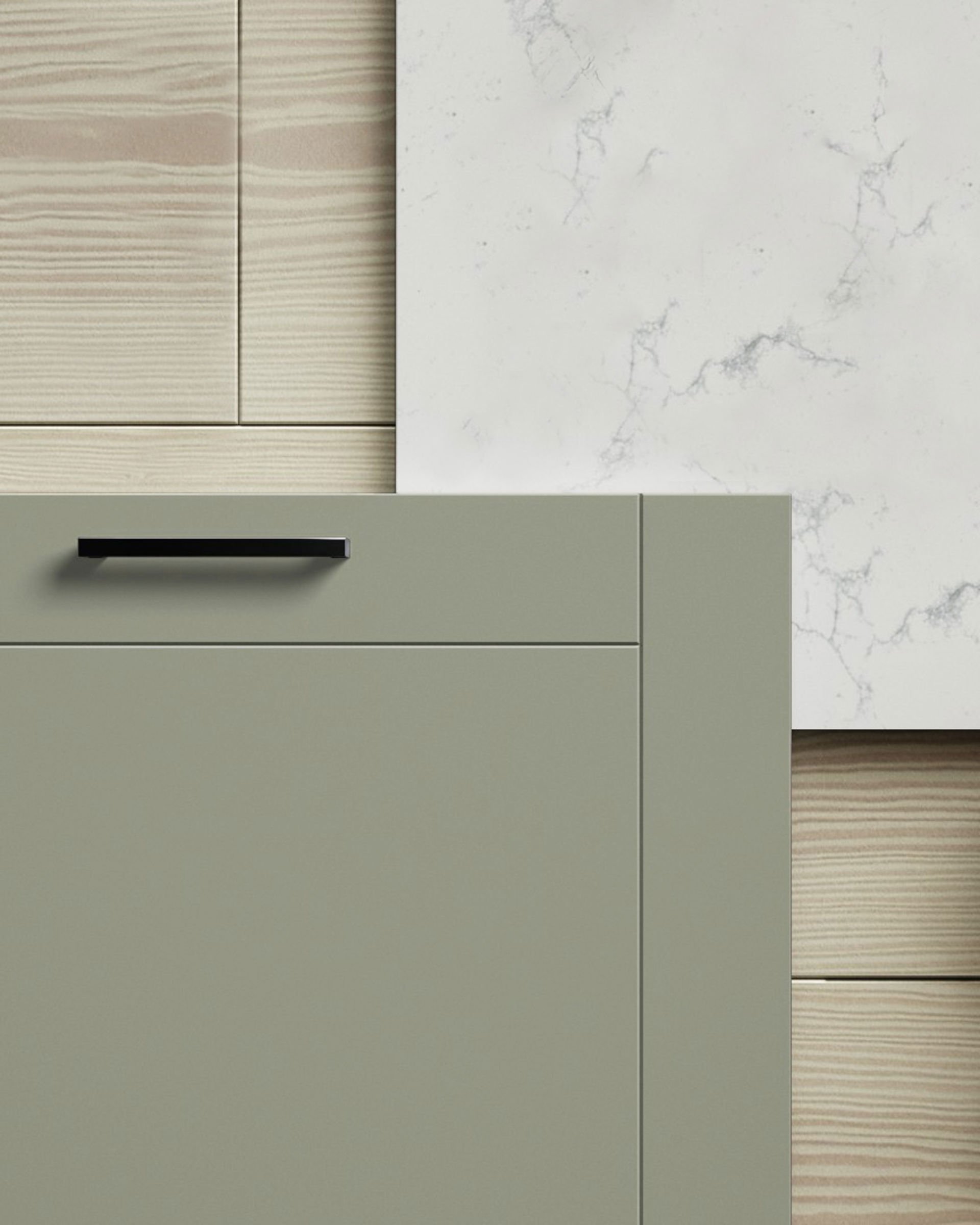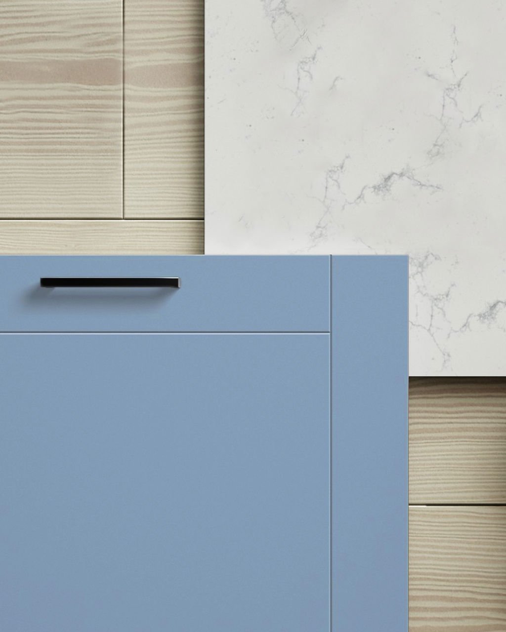 Målad lucka av 16 mm MDF-board med frästa spår och svagt rundad kant. Levereras i alla kulörer mot kulörtillägg med några få undantag. Finns också i vitrin med klarglas.