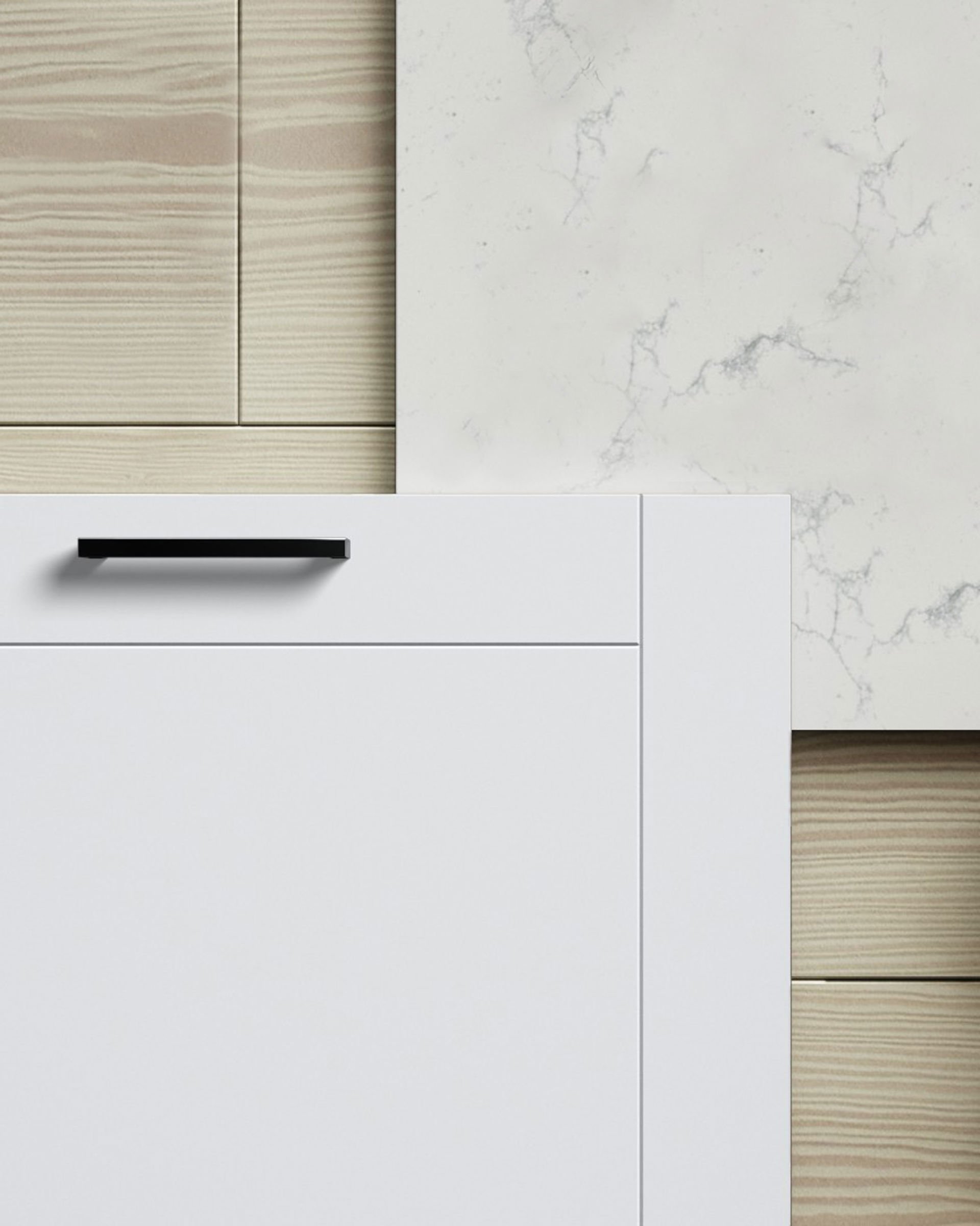 Målad lucka av 16 mm MDF-board med frästa spår och svagt rundad kant. Levereras i alla kulörer mot kulörtillägg med några få undantag. Finns också i vitrin med klarglas.