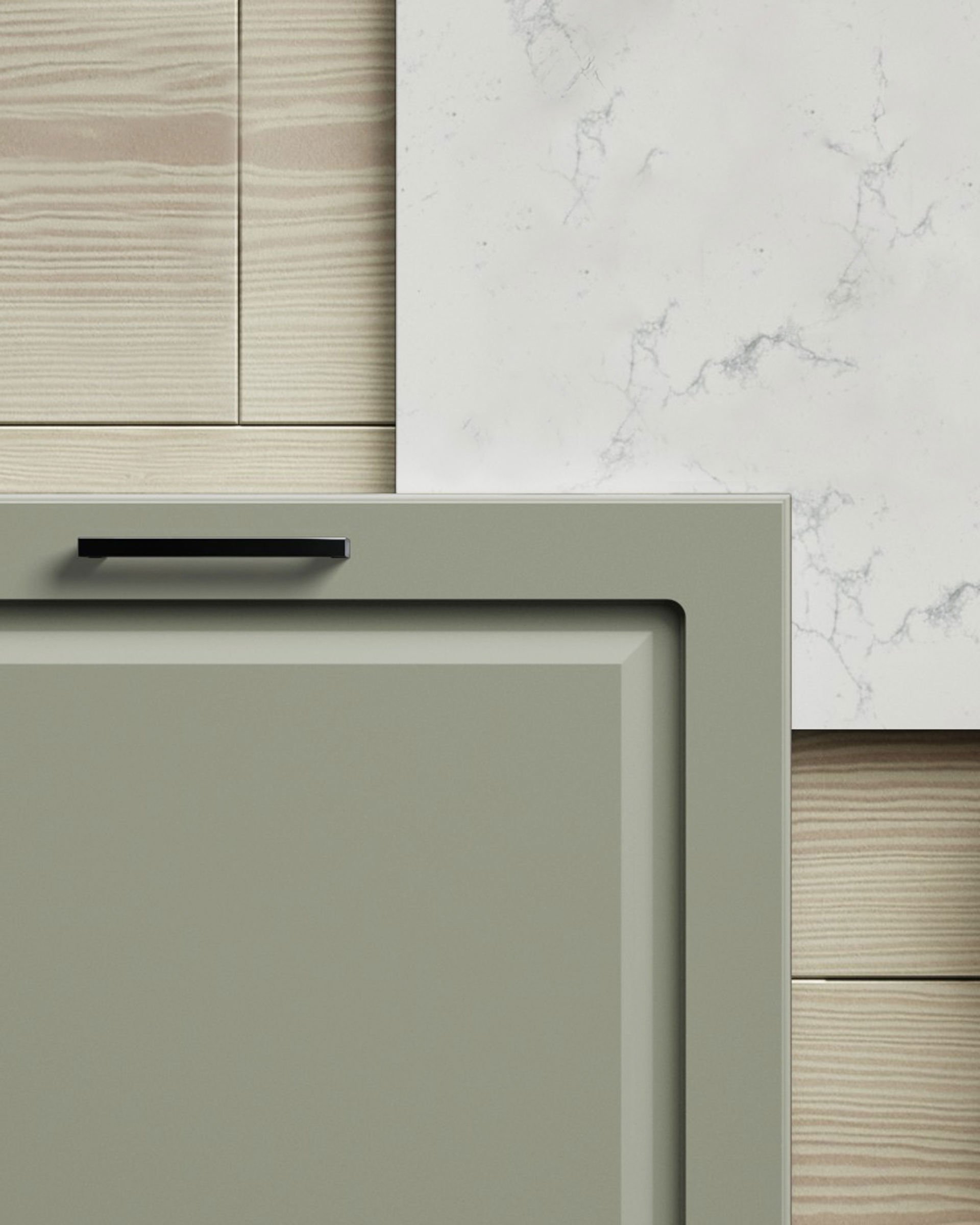 Målad lucka av 19 mm MDF-board med fräst profil och svagt rundad kant. Levereras i alla kulörer mot kulörtillägg med några få undantag. Finns också i spröjsad vitrin med klarglas. Toppvitrin finns till skåp i höjd 988 och 1138 mm i tre bredder med klarglas.