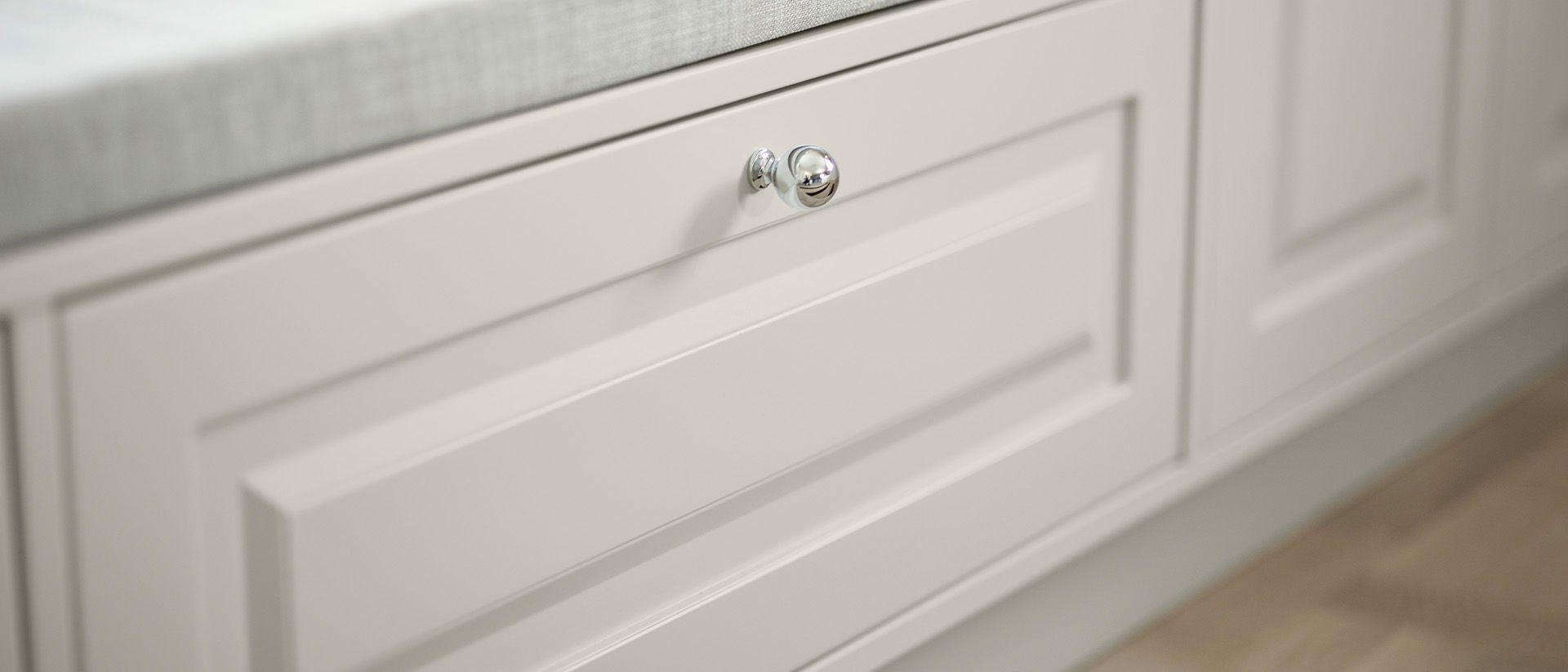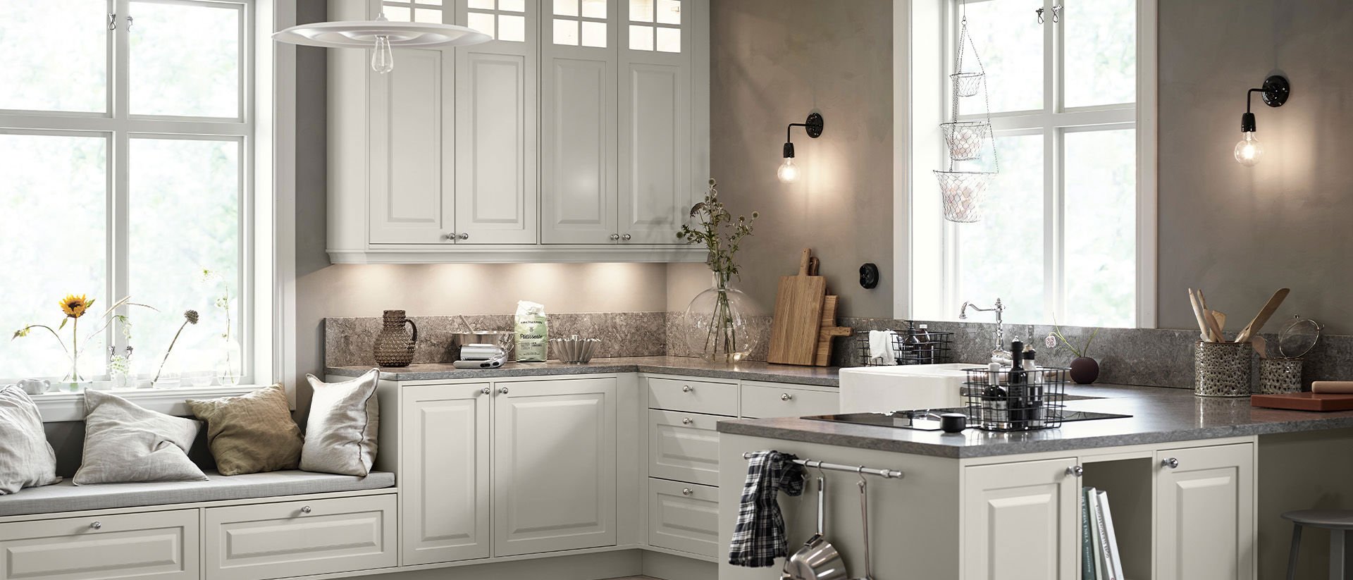 Luckan Alice har ett klassiskt formspråk med inspiration från traditionellt hantverk. Den målade luckan har en fräst allmogeprofil som ger en lantlig och ombonad känsla – ett uttryck som håller över tid och skapar ett kök med själ och värme.