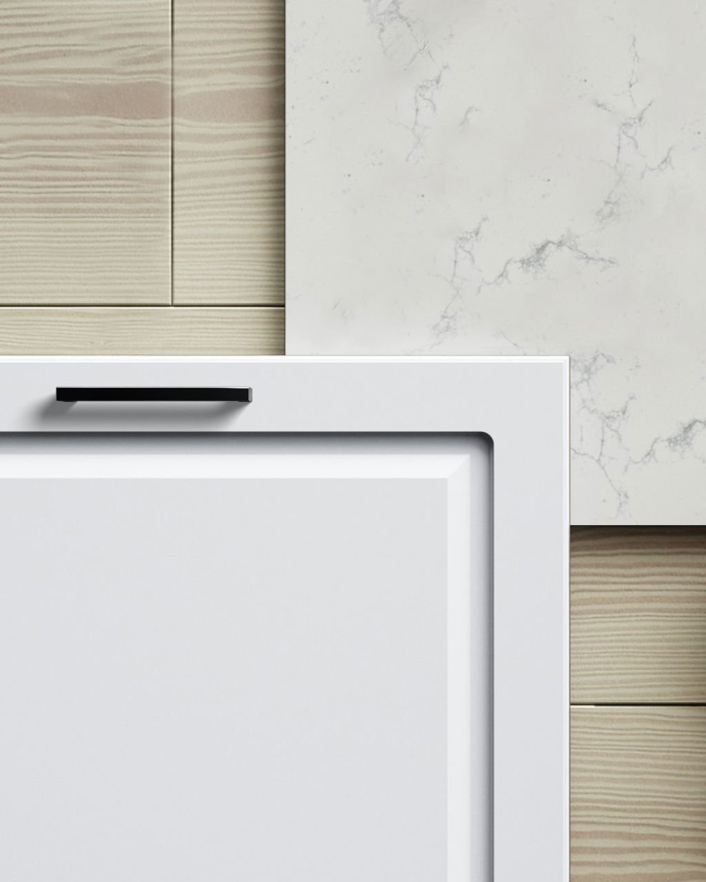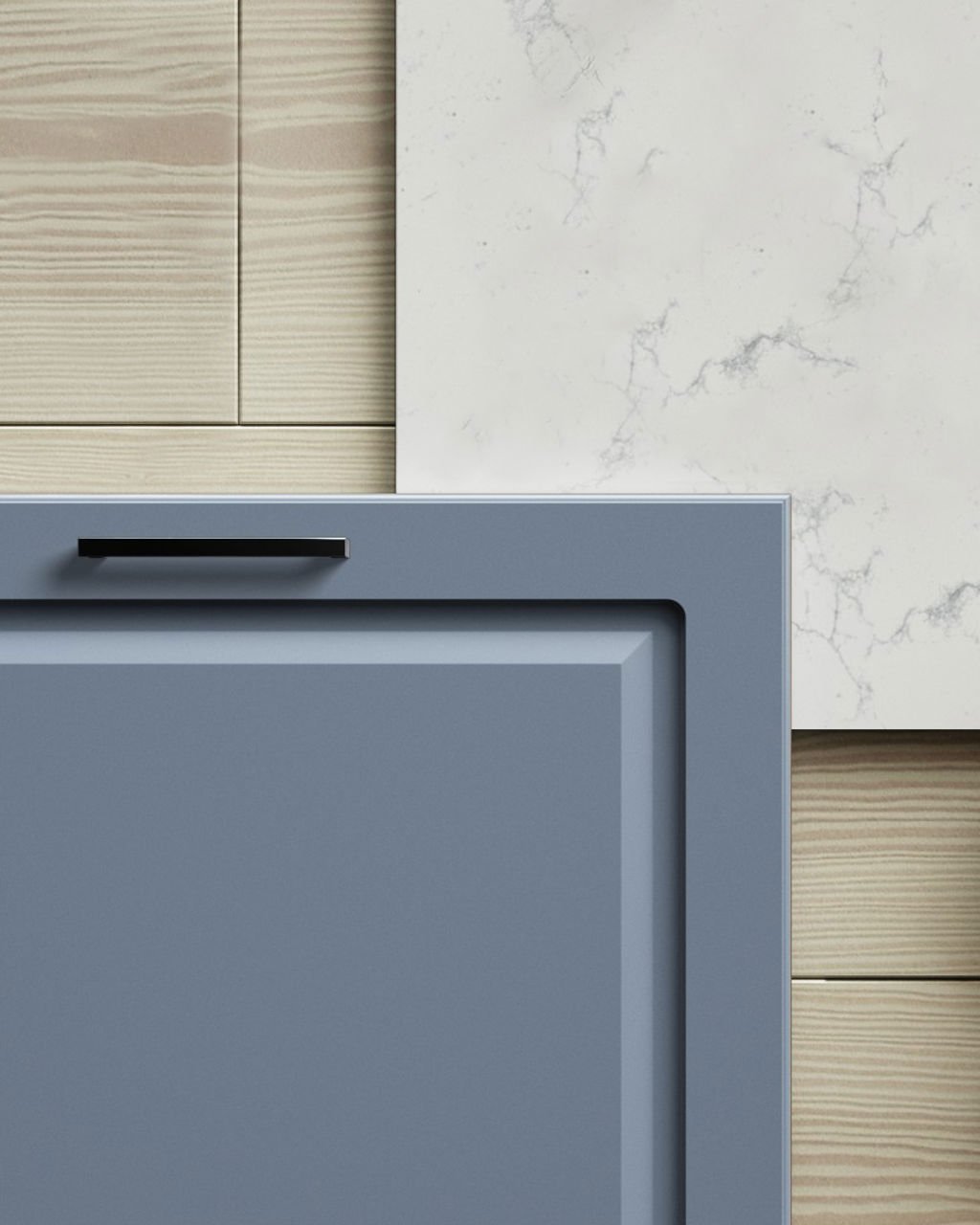 Målad lucka av 19 mm MDF-board med fräst profil och svagt rundad kant. Levereras i alla kulörer mot kulörtillägg med några få undantag. Finns också i spröjsad vitrin med klarglas. Toppvitrin finns till skåp i höjd 988 och 1138 mm i tre bredder med klarglas.