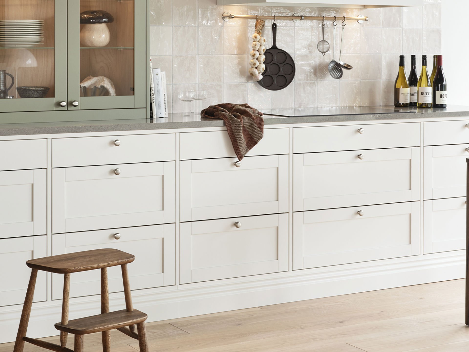 Luckan Edit är en ramlucka med ett klassiskt formspråk som hämtar inspiration från traditionellt hantverk. Med sin målade yta och stilrena ram skapar den ett kök som känns både ombonat och tidlöst – där varje detalj bidrar till helheten.