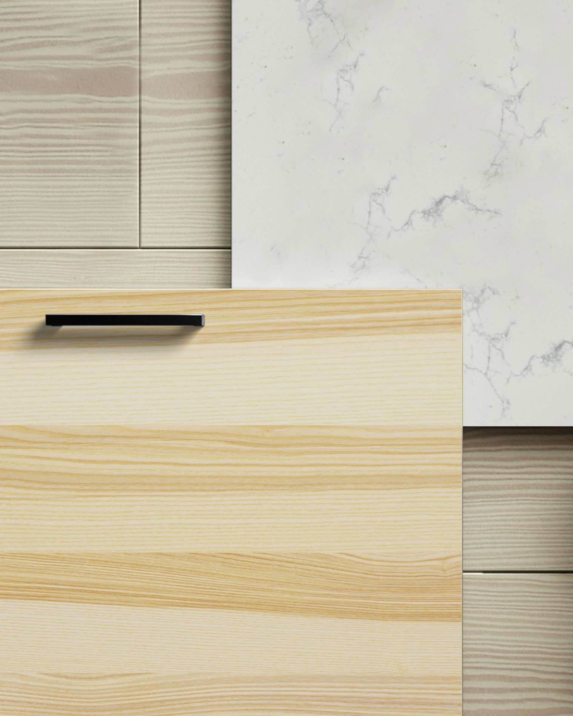 Liv finns även med integrerad grepplist i samma träslag som luckan. Högskåpsluckor har grepplist på ena långsidan.