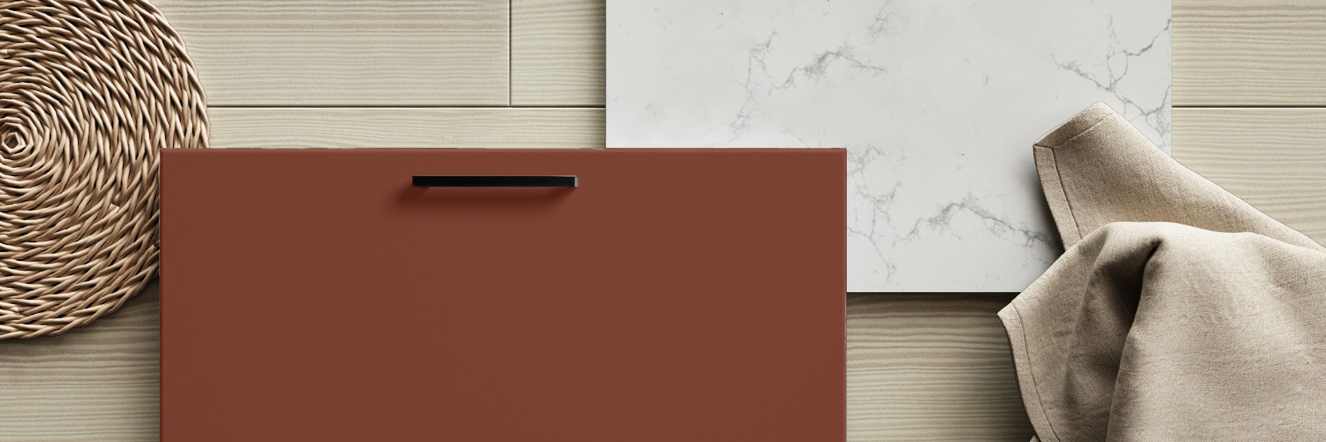 Luckan Maja är en slät lucka som skapar ett lugn och en harmonisk bas för köket. Den svagt rundade kanten ger ett mjukt intryck som balanserar det stilrena – en liten detalj som gör stor skillnad.