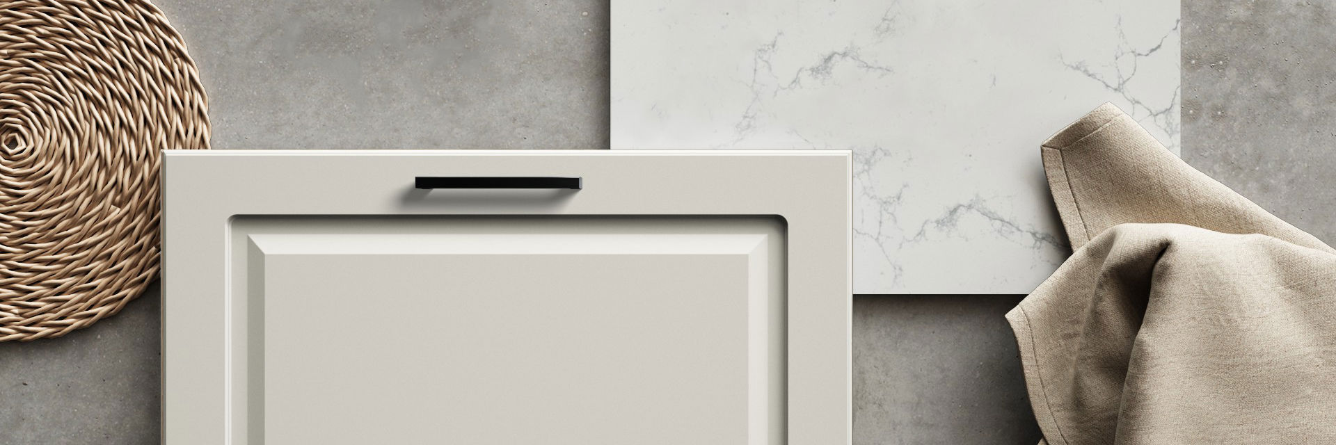 Målad lucka 19 mm MDF-board med fräst profil och svagt rundad kant. Finns också i vitrin med klarglas till högskåp. Kan fås i vitt eller i någon av våra kulörer.