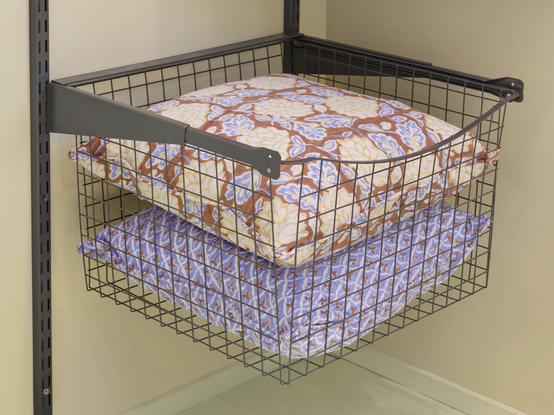 1-pack trådback av grå epoxilackerad tråd. Löper på stabila rullskenor med utdragsstopp. Tål belastning på 15 kg/hylla. Trådbackarna är 330 mm höga och finns för skåpsbredderna 400, 500 och 600 mm. Passar också Ax väggsystem monterat i konsolram rullskena på hängskena i vägg.